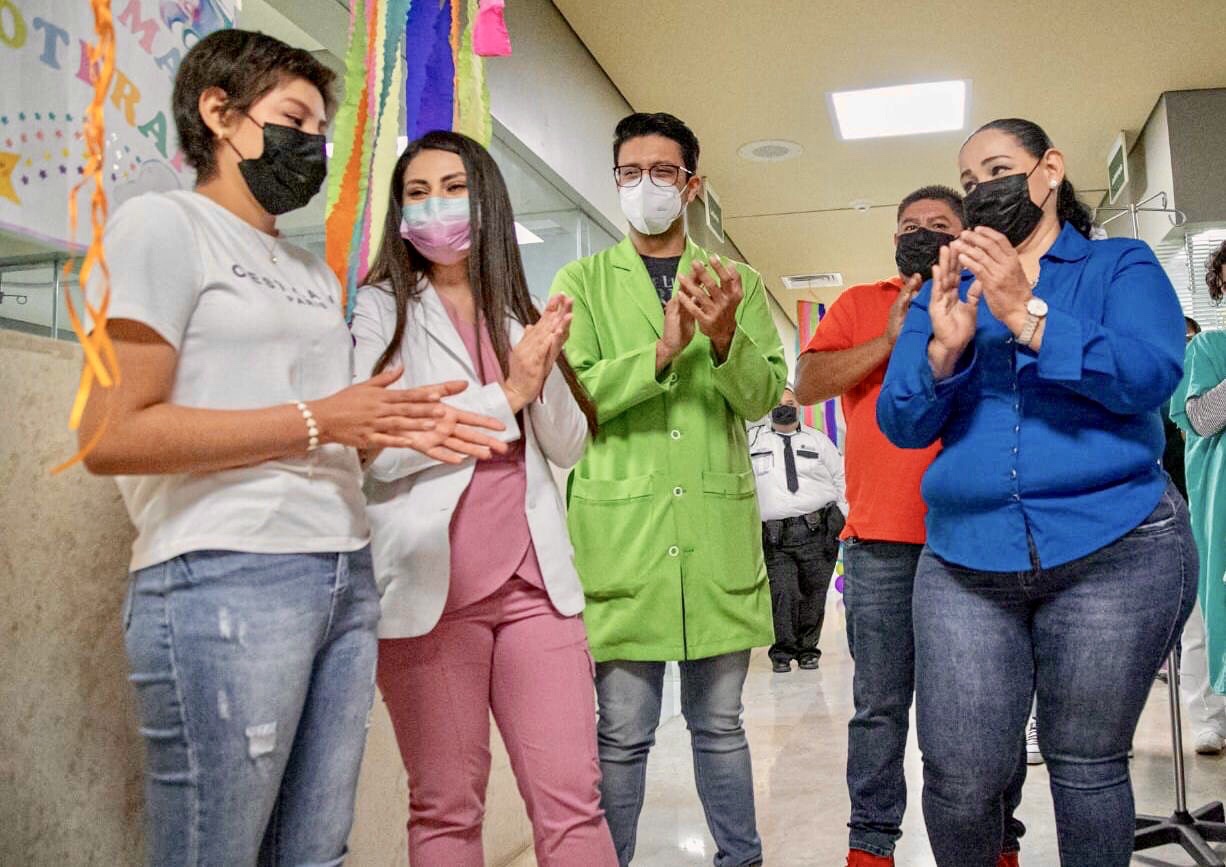 Acompañada de su familia e integrantes del equipo multidisciplinario que la acompañó durante su tratamiento, Norma Itzel dio un toque de campana en el área de ONCOCREAN del Hospital General de Zona (HGZ) No. 1, de Villa de Álvarez Colima.