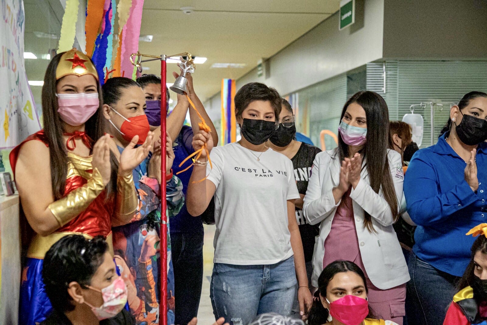 Norma Itzel toca ‘campana de vida’ al concluir su tratamiento de quimioterapias.