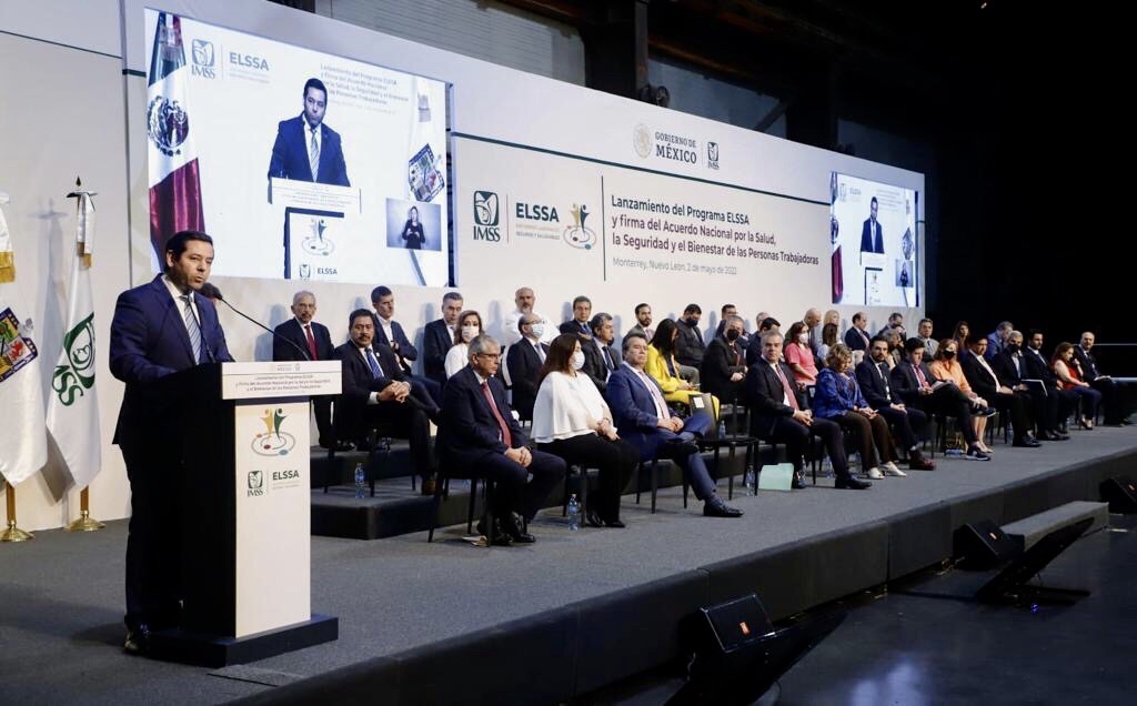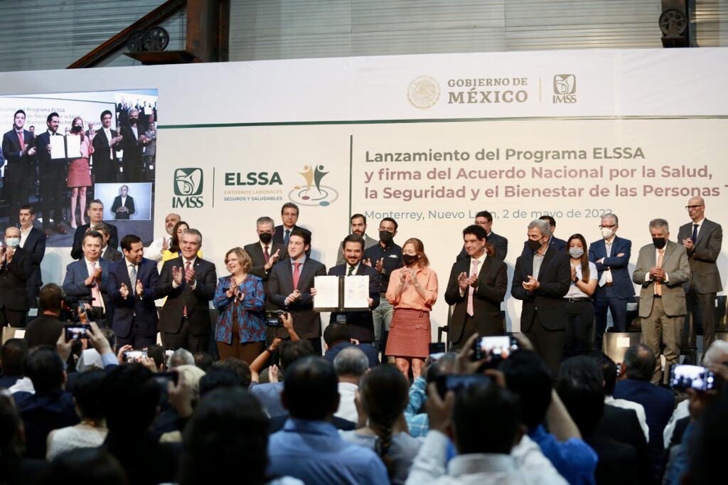 El Instituto Mexicano del Seguro Social (IMSS), el gobierno de Nuevo León, representantes del gabinete del gobierno federal, los sectores empresarial y sindical presentaron el programa Entornos Laborales Seguros y Saludables (ELSSA), y firmaron el Acuerdo Nacional por la Salud, la Seguridad y el Bienestar de las Personas Trabajadoras, con el objetivo de impulsar una cultura de prevención en las empresas, fortalecer la salud de los trabajadores y reducir las enfermedades crónico degenerativas.