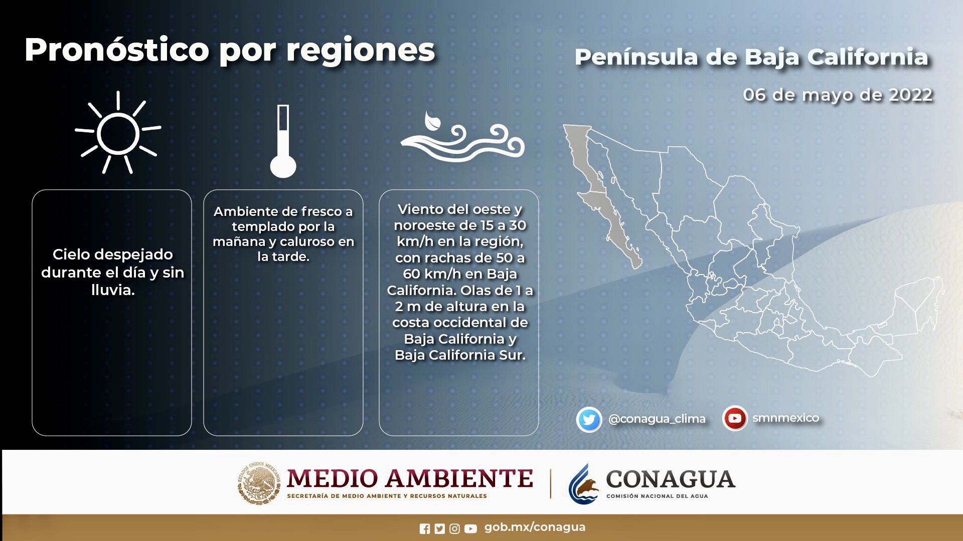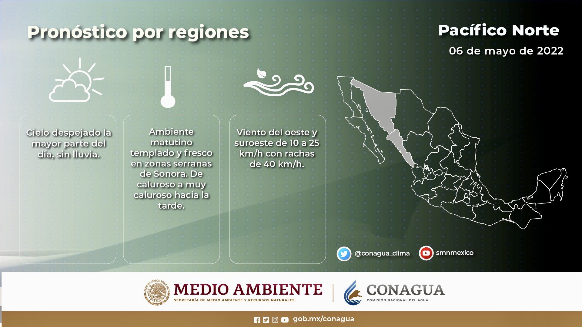 El tiempo hoy en estados del Pacífico mexicano y la Península de Baja California.