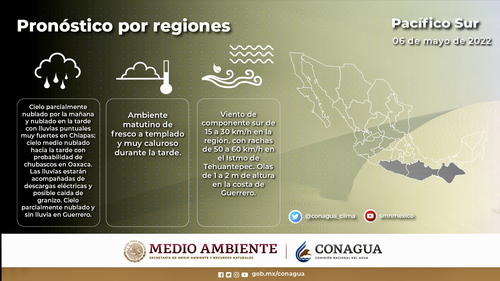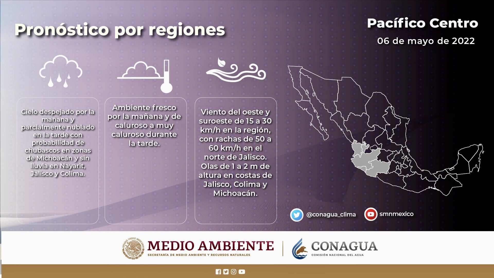 Consulta en las siguientes #Infografías las condiciones del tiempo que el #SMNmx pronostica para este viernes en la #PenínsulaDeBajaCalifornia y los estados del #Pacífico mexicano.