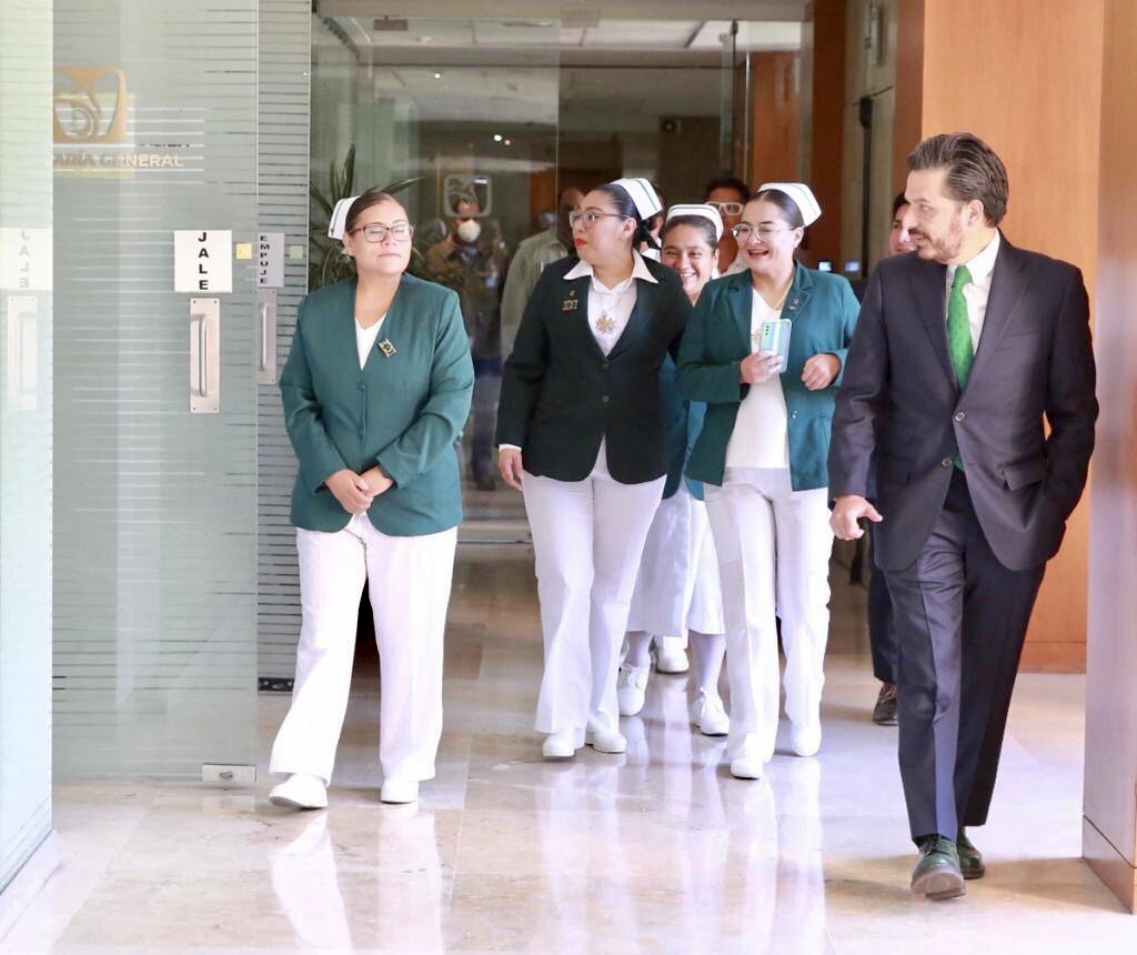 El director general del Instituto Mexicano del Seguro Social (IMSS), Zoé Robledo, reconoció a más de 130 mil enfermeras y enfermeros del Seguro Social, que son quienes mueven, dan rumbo al Instituto y representan el corazón de la atención médica.