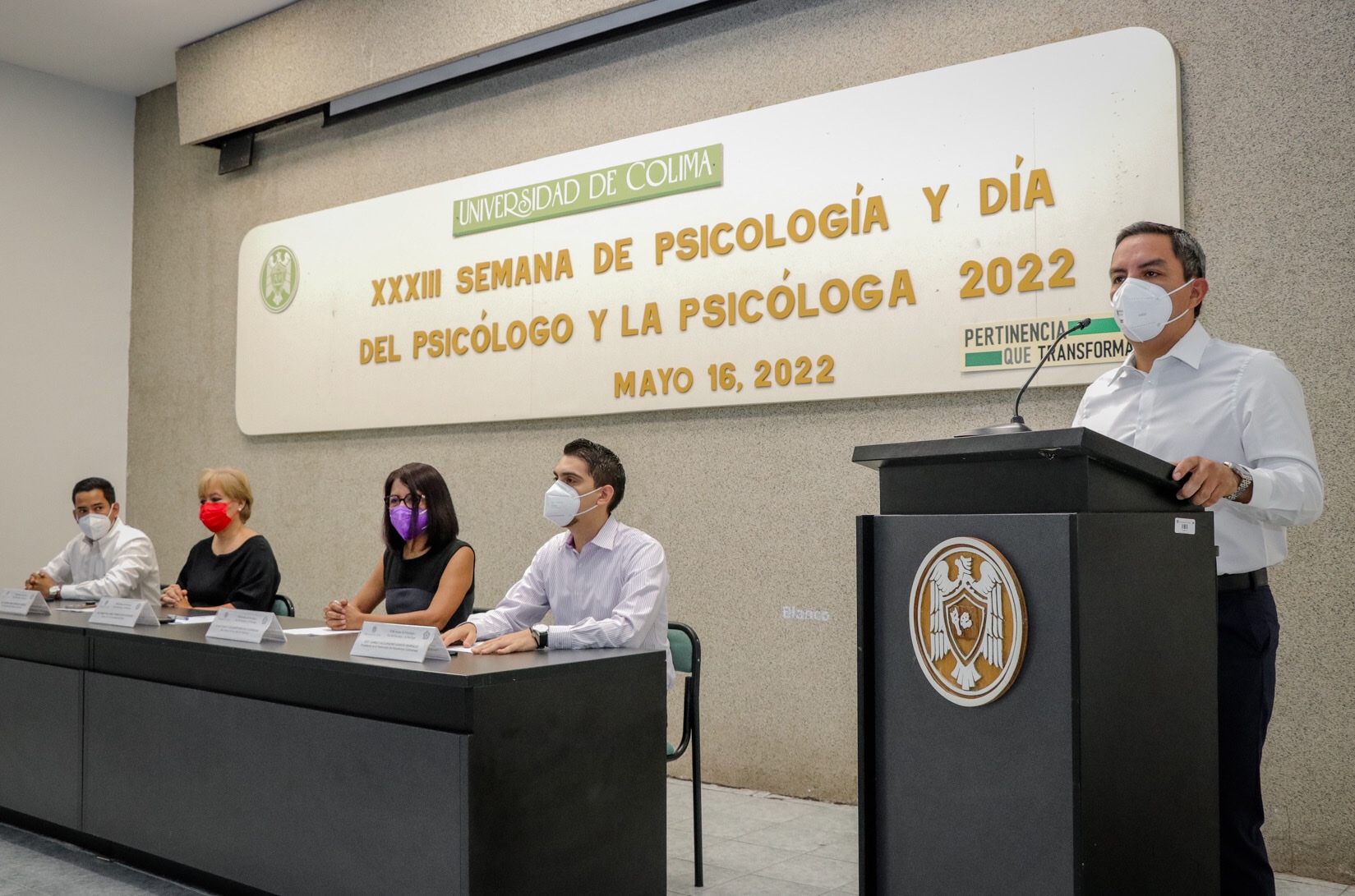 Al inaugurar las actividades de la 33 Semana de Psicología, que tiene como lema “Los retos de la psicología en escenarios emergentes y problemas en la nueva normalidad, salud mental desde lo individual a lo colectivo”, el rector de la Universidad de Colima, Christian Jorge Torres Ortiz Zermeño destacó el papel tan importante que esta disciplina ha jugado en los meses de pandemia.
