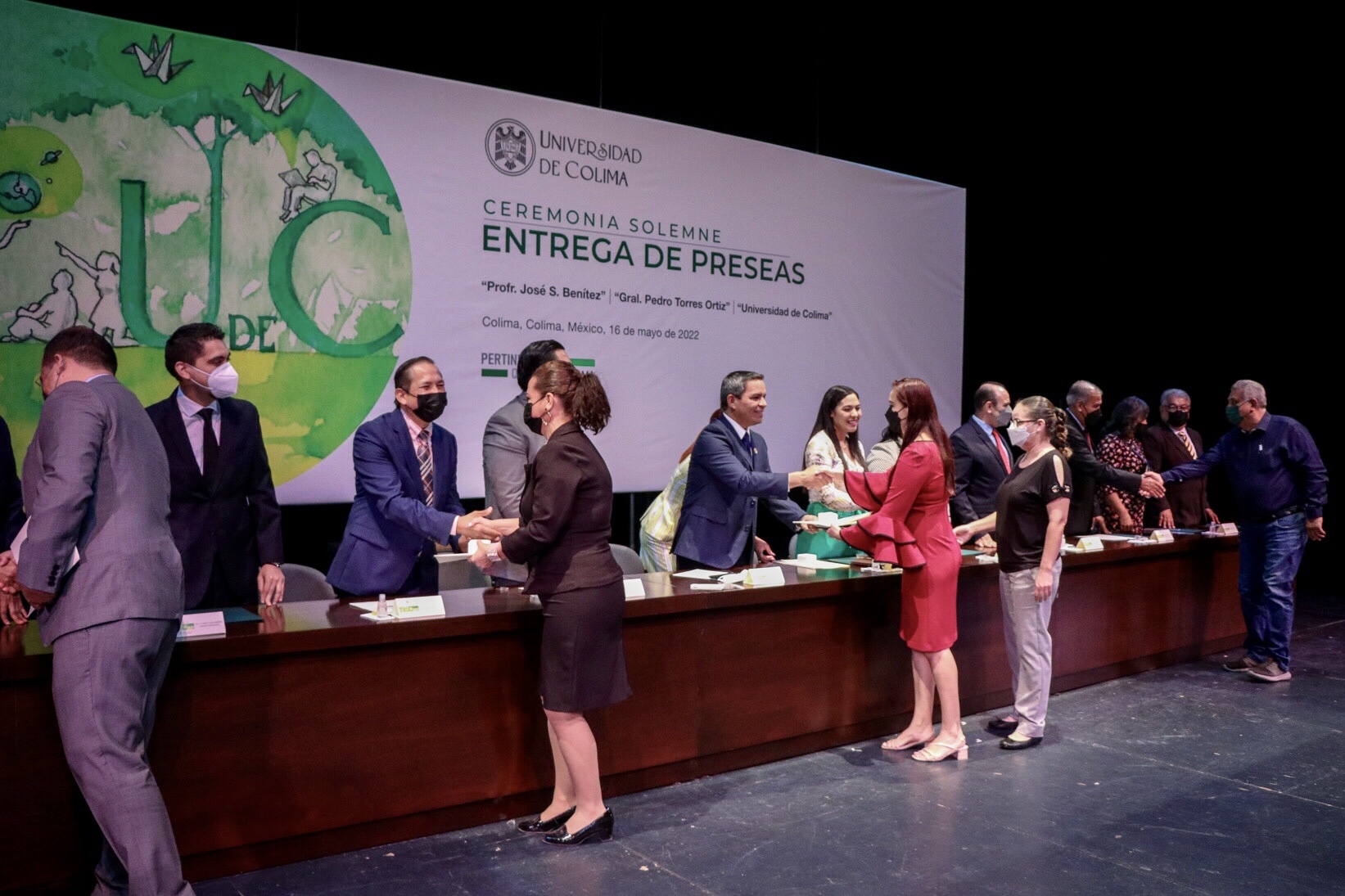 La ceremonia estuvo presidida por Indira Vizcaíno Silva, gobernadora del estado y por Christian Jorge Torres Ortiz Zermeño, rector de la Universidad de Colima.