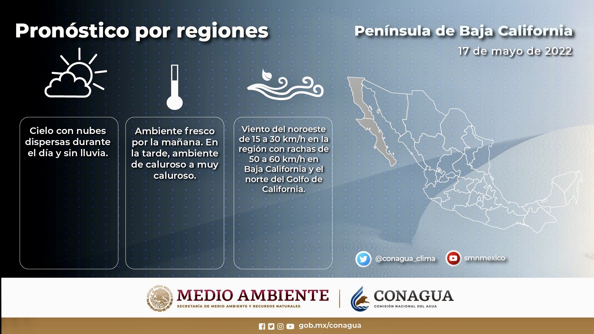 Consulta el #PronósticoDelTiempo para este martes en la #PenínsulaDeBajaCalifornia y los estados del #Pacífico mexicano.