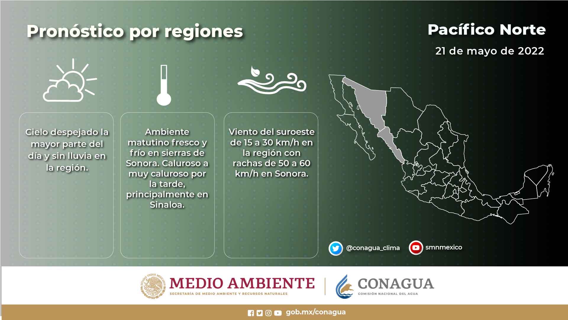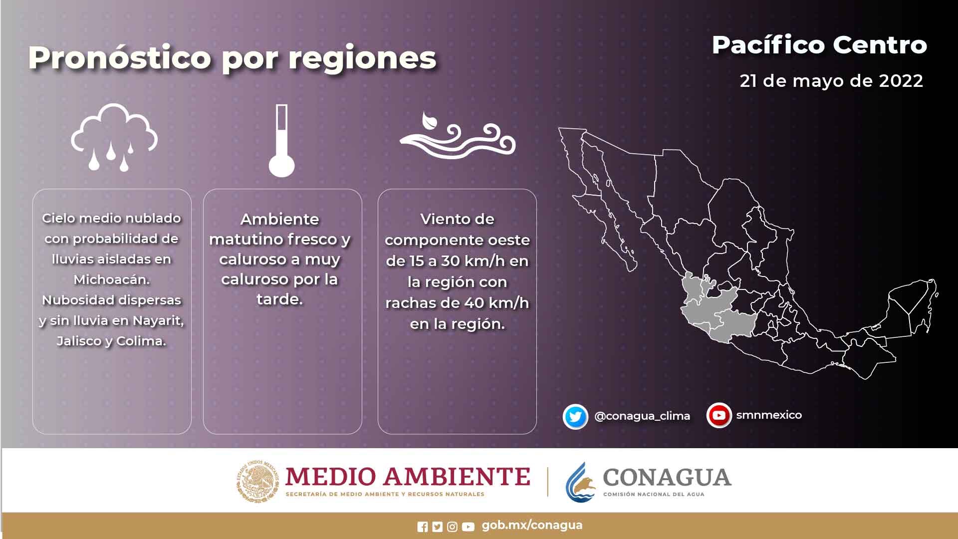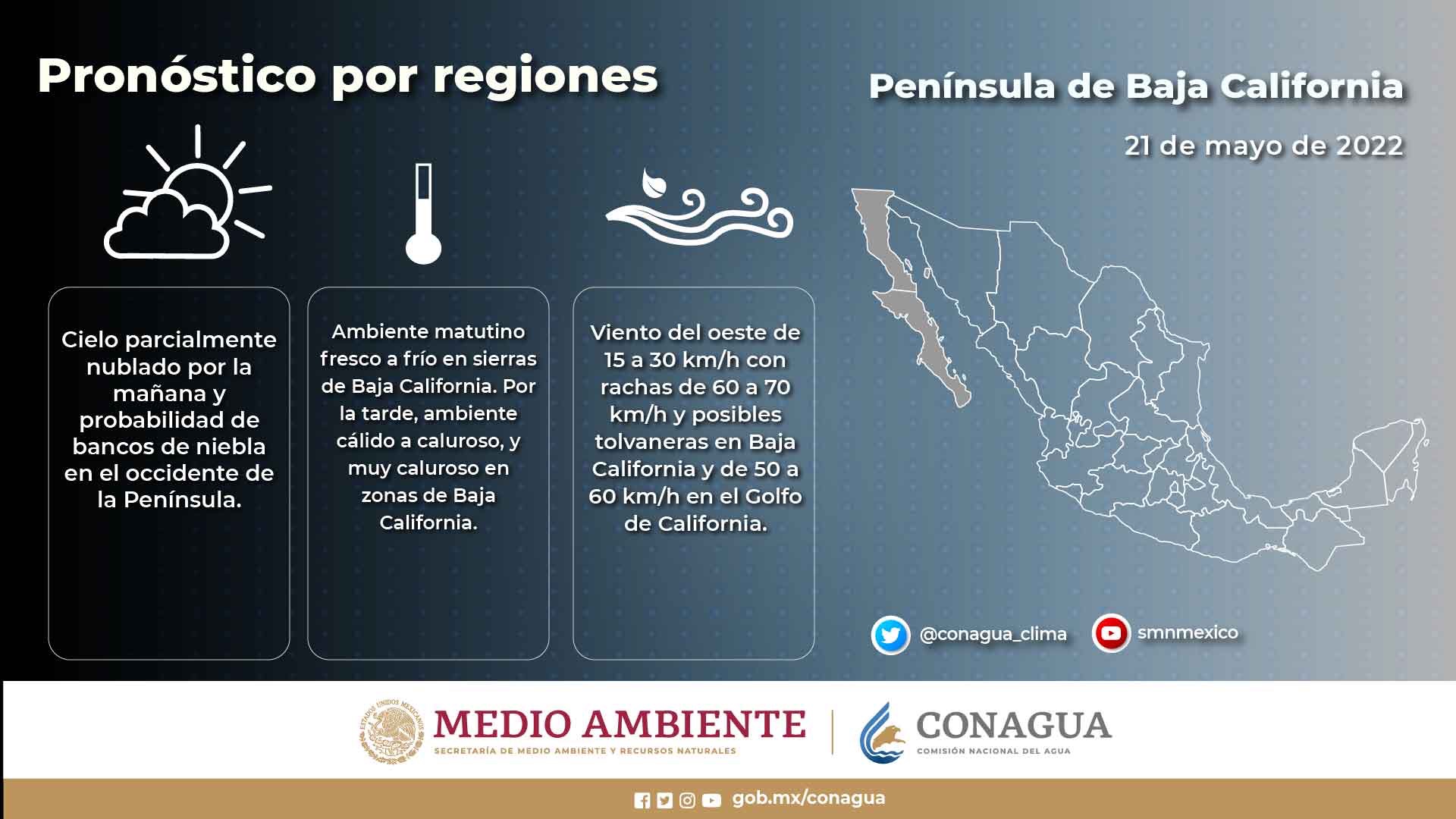 Infórmate a cerca de las condiciones del tiempo que se pronostican para este sábado en la #PenínsulaDeBajaCalifornia y los estados del #Pacífico mexicano, a través de nuestras #Infografía.