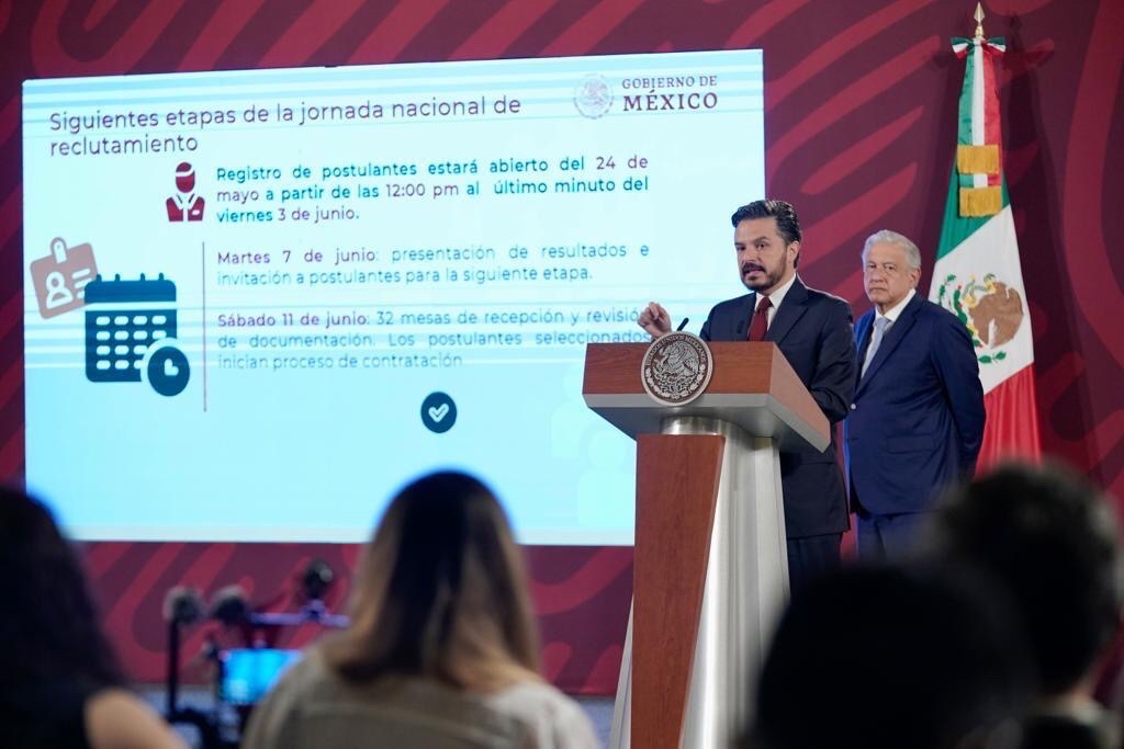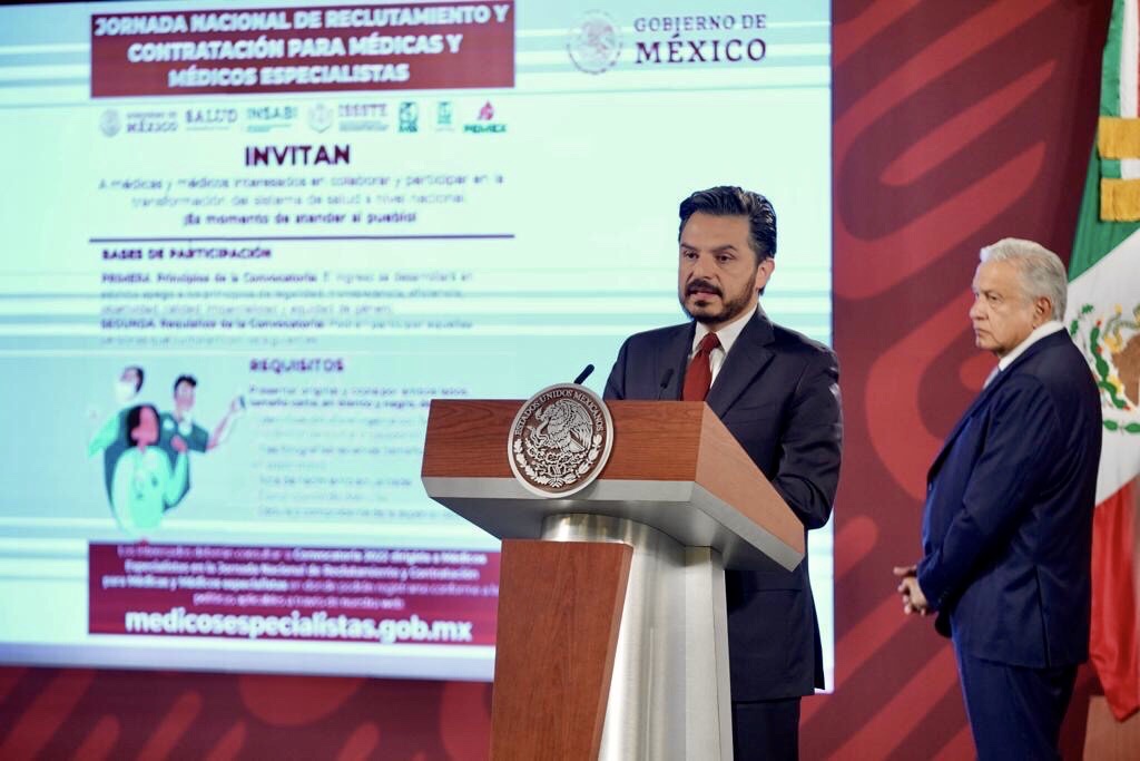 Durante la conferencia del presidente de México en Palacio Nacional, el director general del Instituto Mexicano del Seguro Social (IMSS), Zoé Robledo, informó que la convocatoria es un esfuerzo para dar cobertura a las vacantes del IMSS, IMSS-BIENESTAR, Instituto de Seguridad y Servicios Sociales de los Trabajadores del Estado (Issste), Petróleos Mexicanos (Pemex), Institutos Nacionales de Salud y los gobiernos de los estados que agregaron sus vacantes a través del Instituto de la Salud para el Bienestar (Insabi).