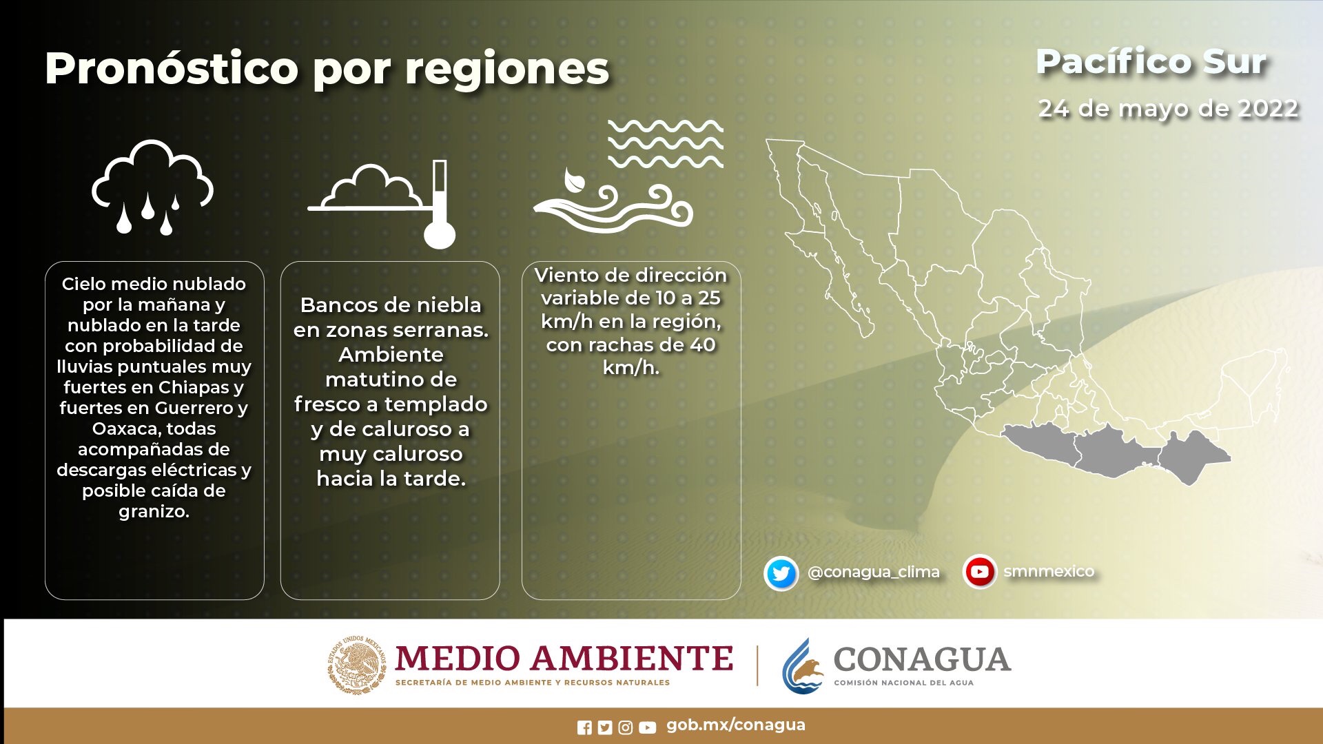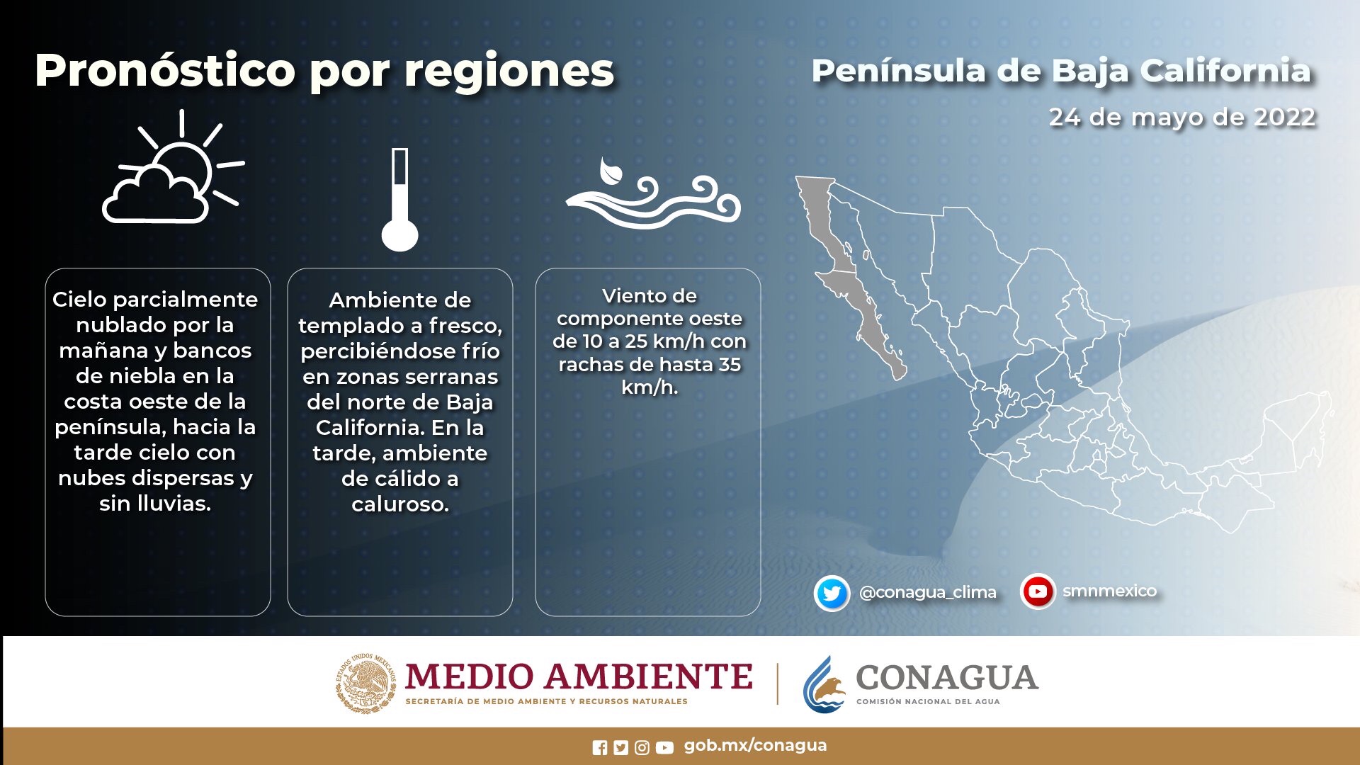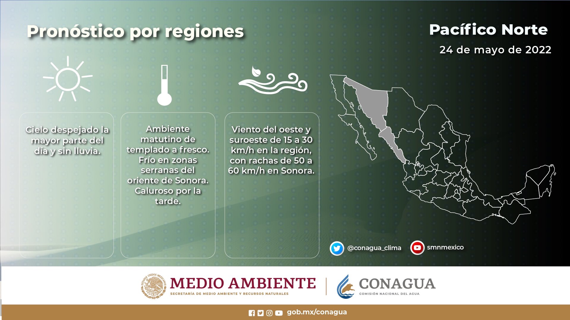 Consulta el #PronósticoDelTiempo para este martes, en la #PenínsulaDeBajaCalifornia y los estados del #Pacífico mexicano.