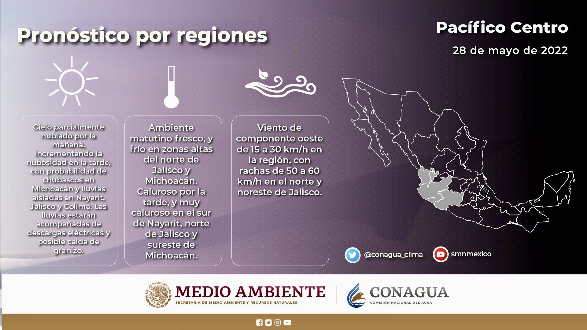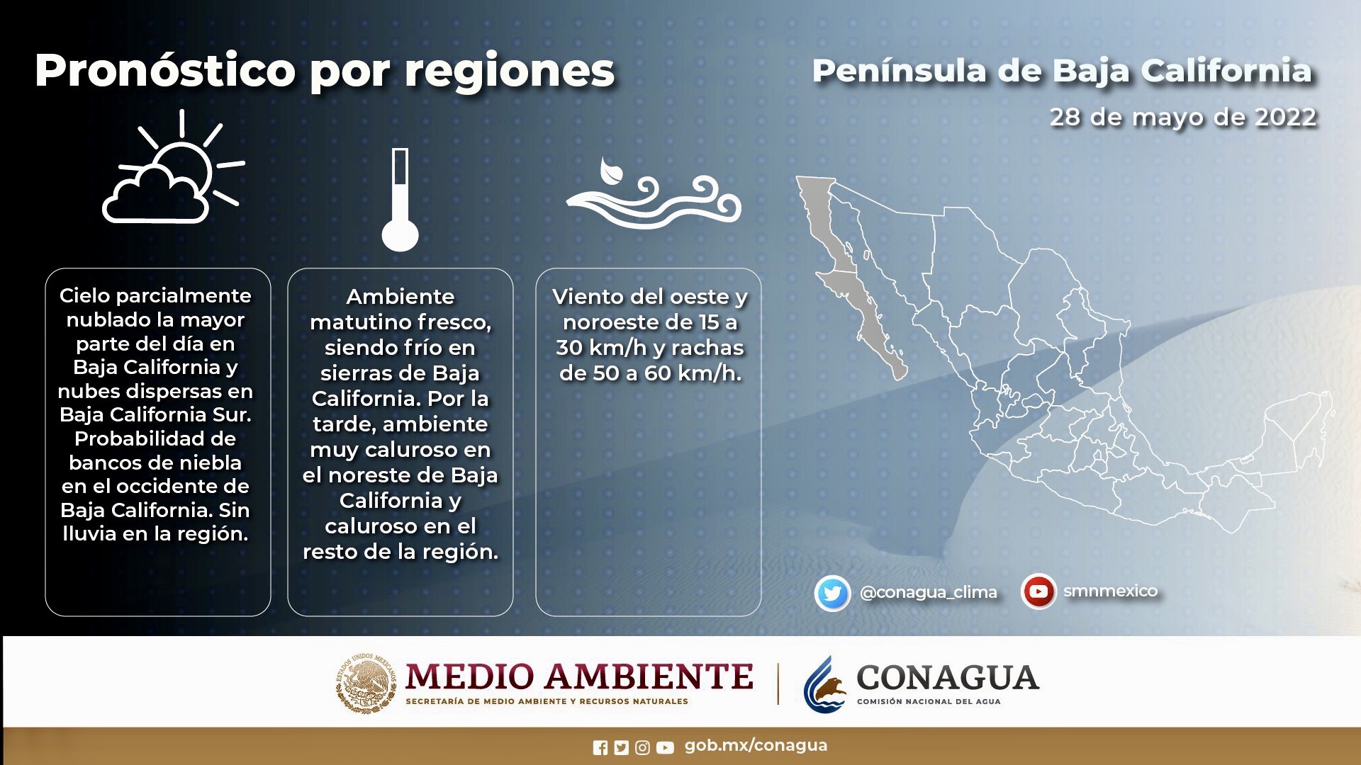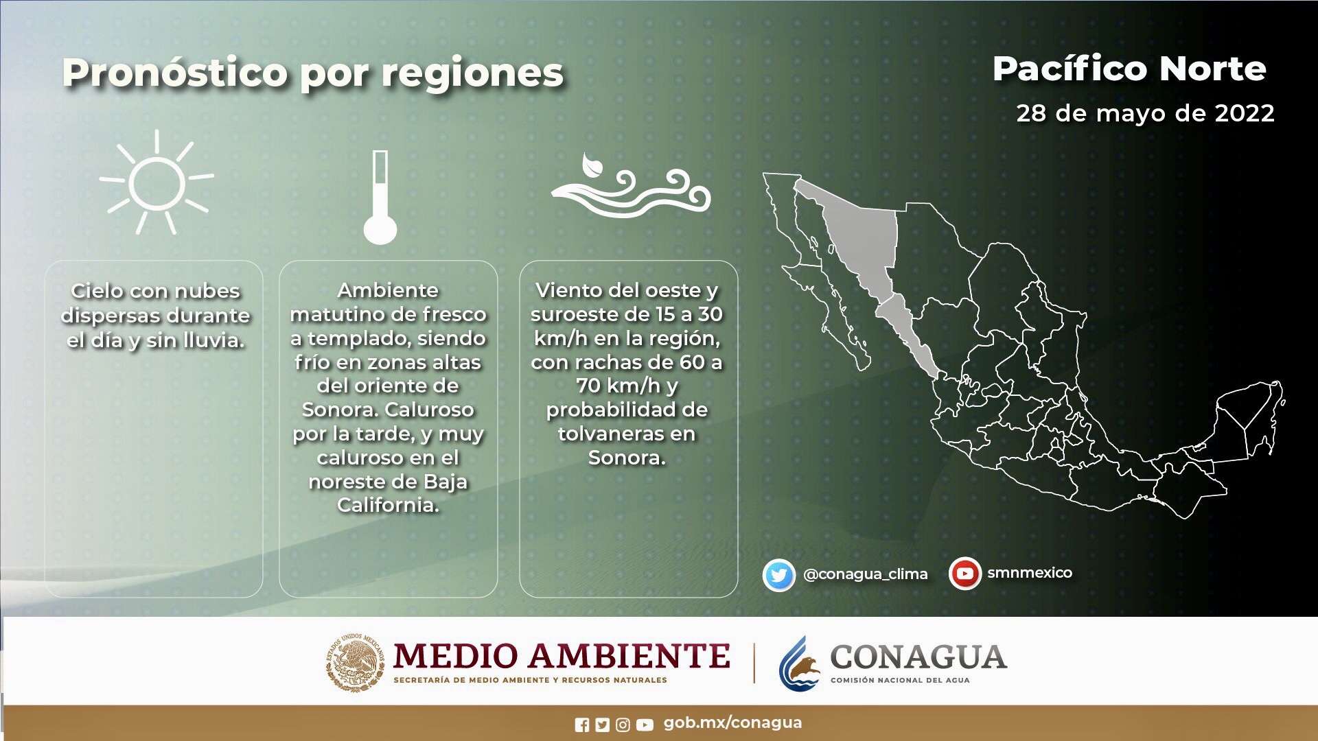 Consulta el #PronósticoDelTiempo para este día, en la #PenínsulaDeBajaCalifornia y los estados del #Pacífico mexicano.