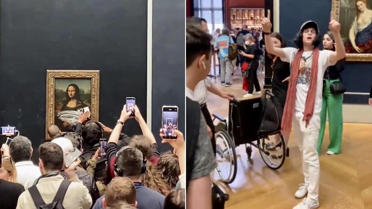 Un sujeto disfrazado de anciano lanzó un pastel contra la obra de ‘La Gioconda’, mejor conocida como ‘La Mona Lisa’, en el Museo del Louvre.