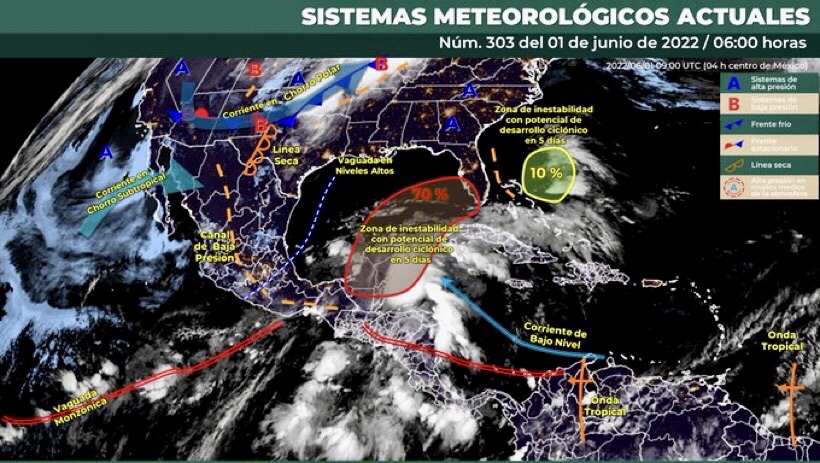 Los remanentes de “Ágatha” producirían lluvias torrenciales en Quintana Roo e intensas en el Sureste de México, Norte y Occidente de la Península de Yucatán.