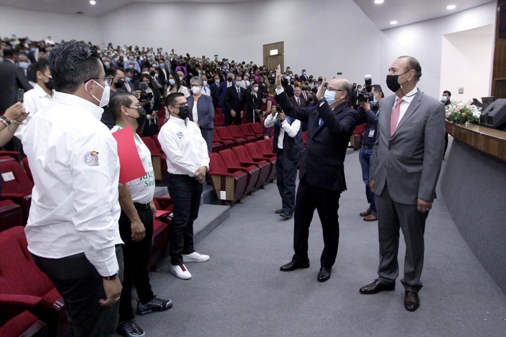 Asimismo, hizo un reconocimiento al secretario general del SNTSS, doctor Arturo Olivares Cerda, y al director general Zoé Robledo, por ese liderazgo fuerte y firme que les permitió conducir al Seguro Social en medio de la pandemia, con el trabajo del personal de salud, para salvar vidas.