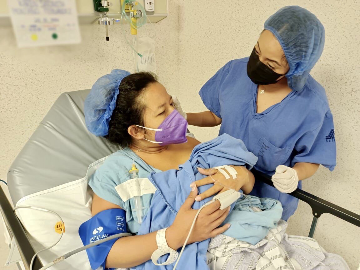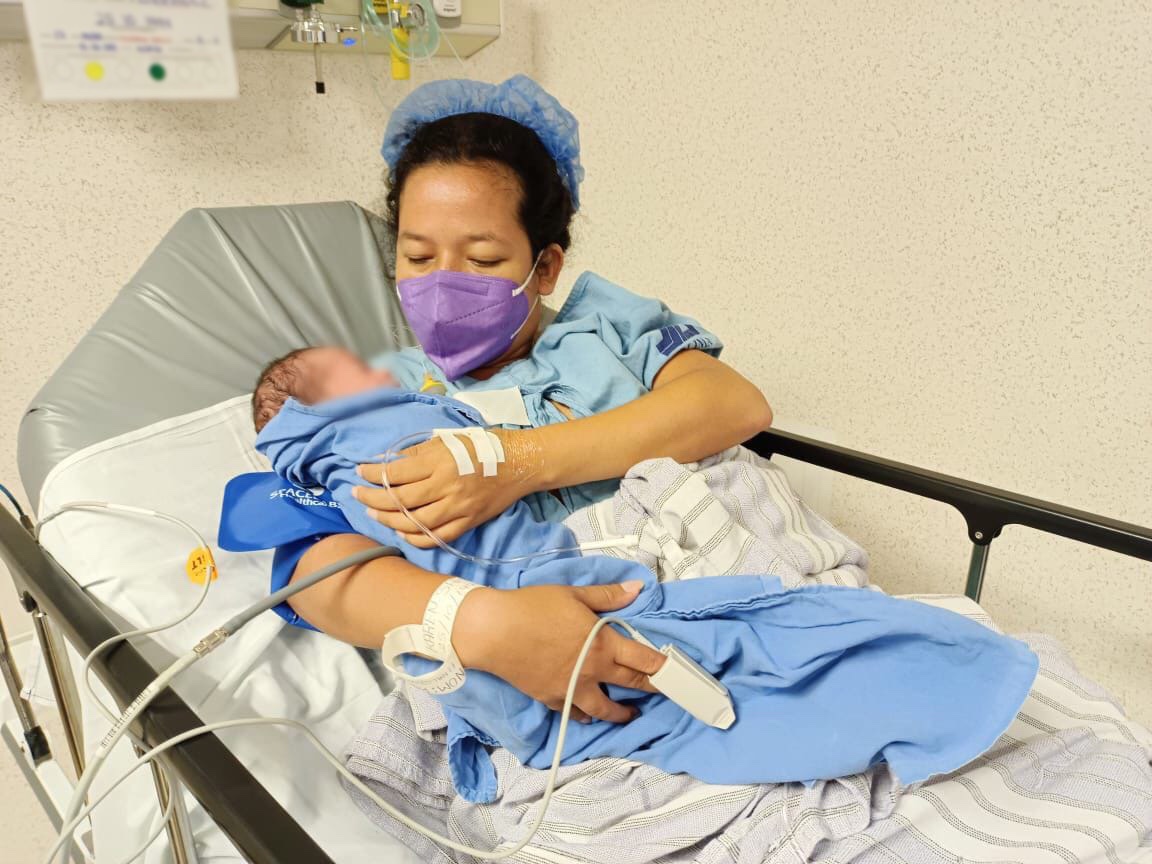 Karen Montaño de 27 años es una de las beneficiarias que fue asistida por un equipo multidisciplinario de este Hospital para que su hijo naciera tras una cesárea a las 40 semanas de gestación, con un peso de 2.700 kg. bajo el protocolo de sanidad adecuado, ambos estables y en recuperación.