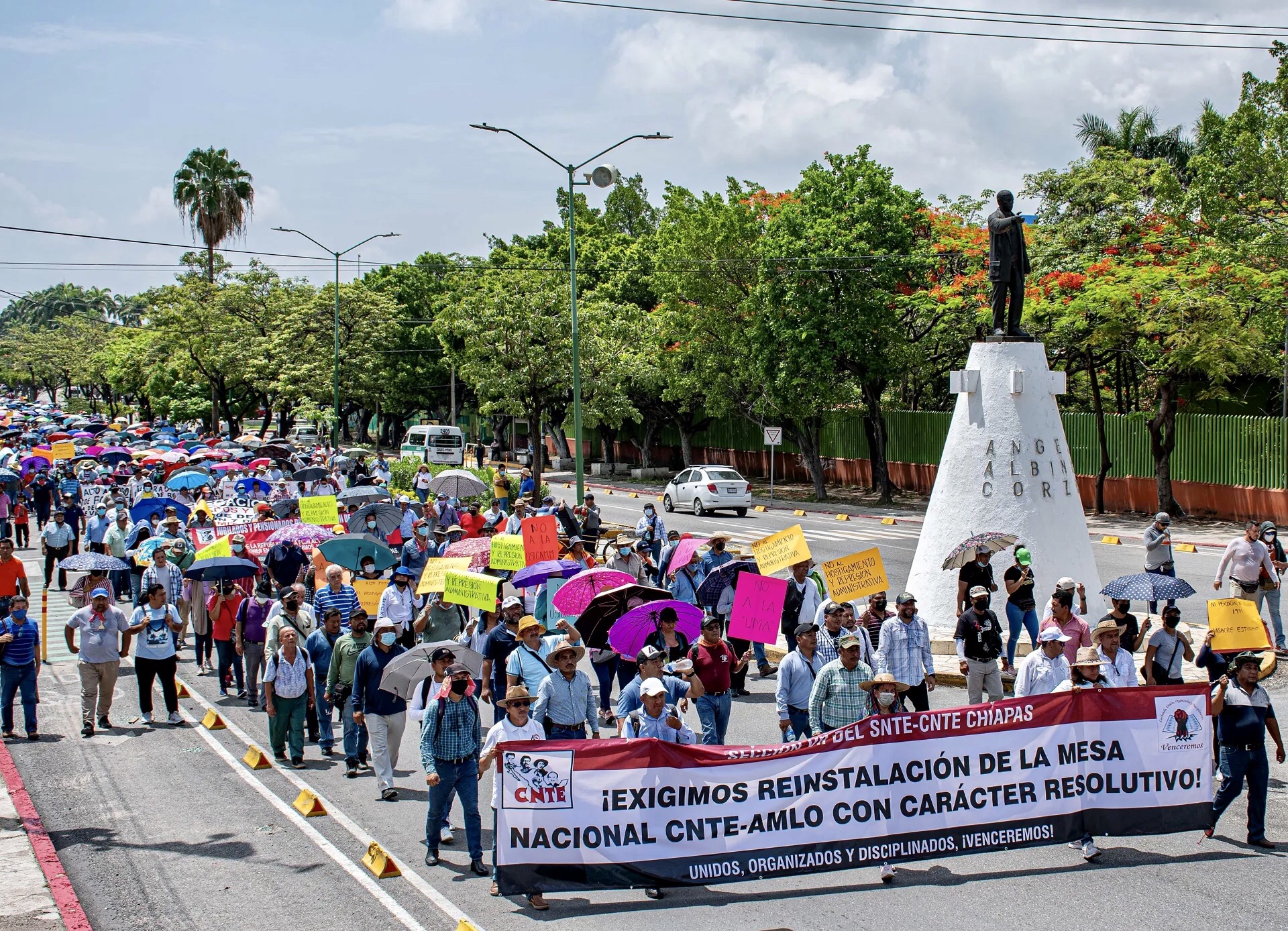 Más de 3 mil 500 maestros de la CNTE marcharon en Tuxtla Gutiérrez, Chiapas, para exigir la reapertura de la mesa de negociación con López Obrador.