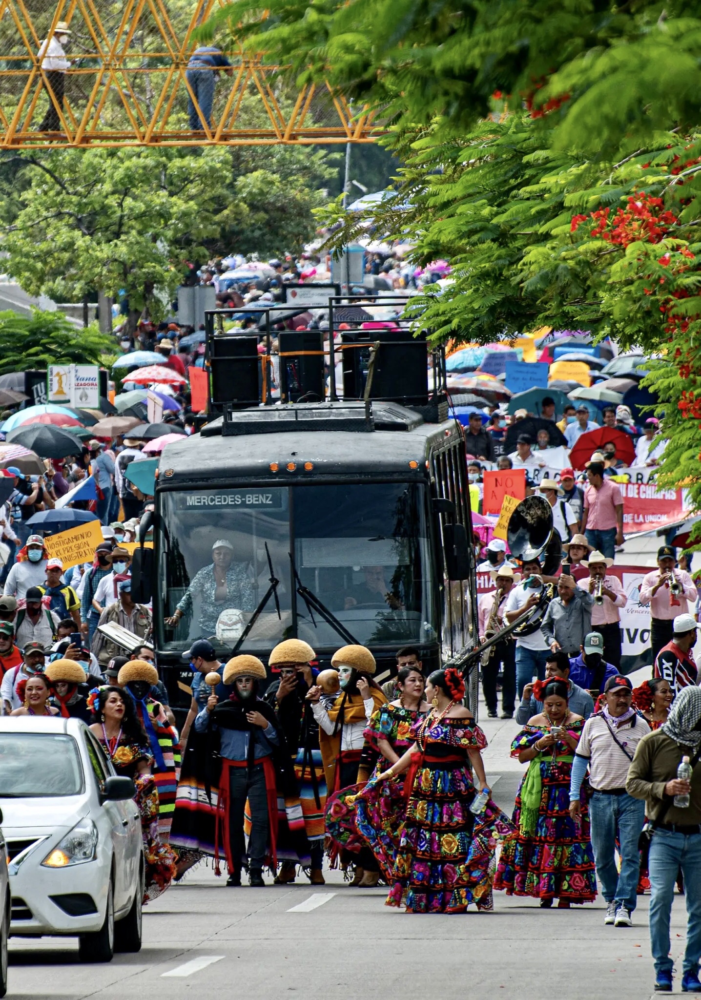 La movilización se realizó en el marco de los 51 años de la masacre del “Jueves de Corpus” y tras dos años de confinamiento forzado por la pandemia, para exigir solución a las demandas pendientes y que se abra el diálogo con el presidente de México, Andrés Manuel López Obrador.