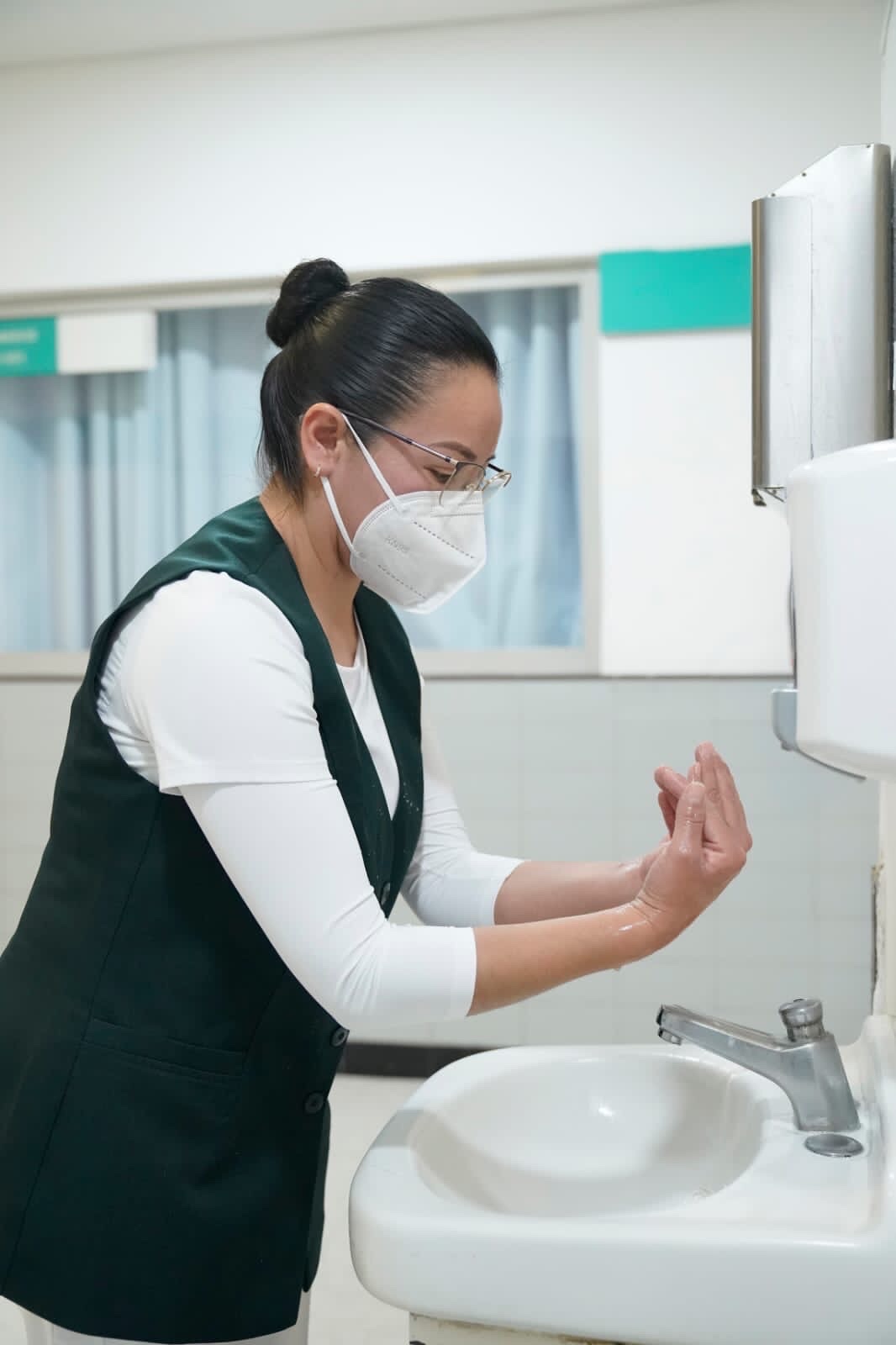 El IMSS explicó que otra medida importante es el lavado frecuentemente de las manos con agua y jabón, principalmente antes de comer cualquier alimento o beber algún líquido, después de sonarse la nariz, toser o estornudar; al salir o llegar a la escuela o casa, antes y después de utilizar el transporte público y siempre que estén visiblemente sucias. Se debe evitar estornudar sobre las manos, lo adecuado es usar el tosido de etiqueta aun usando el cubreboca