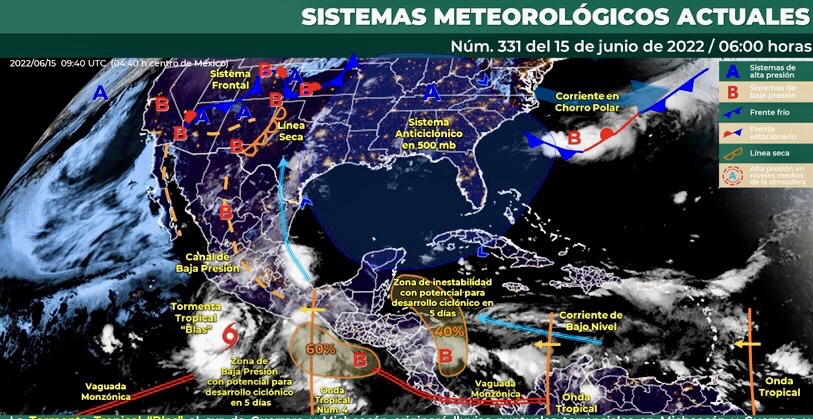 Pronóstico de precipitación para hoy 15 de junio de 2022: