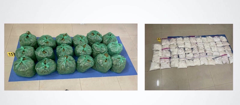 Aseguran más de 53 kilos de metanfetaminas y 17 kilos de marihuana con valor aproximado de 20 mdp.