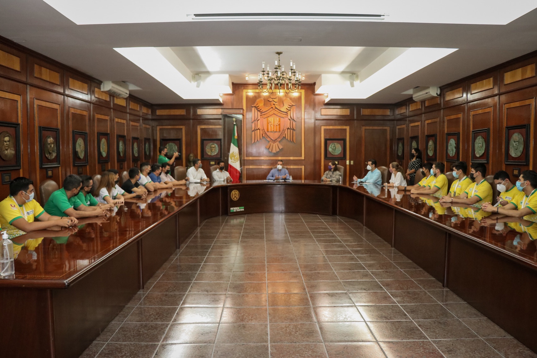La ganadora y los ganadores de medallas en la reciente Universiada Nacional 2022, estuvieron este martes con el rector de la Universidad de Colima, Christian Jorge Torres Ortiz Zermeño, en acto realizado en la Sala de Juntas de rectoría.