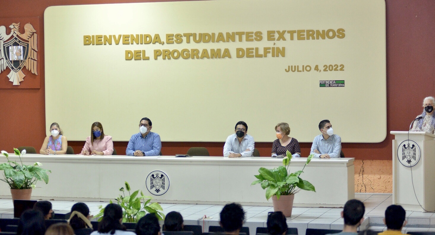 En evento realizado en el auditorio de la Biblioteca de Ciencias de la Universidad de Colima, la Dra. Xóchitl Angélica Trujillo Trujillo, coordinadora general de Investigación, dio la bienvenida a los 111 estudiantes que solicitaron realizar su estancia de investigación en esta casa de estudios, como parte del programa Delfín, creado en 1995 para fortalecer el desarrollo de la investigación y el posgrado en el país.