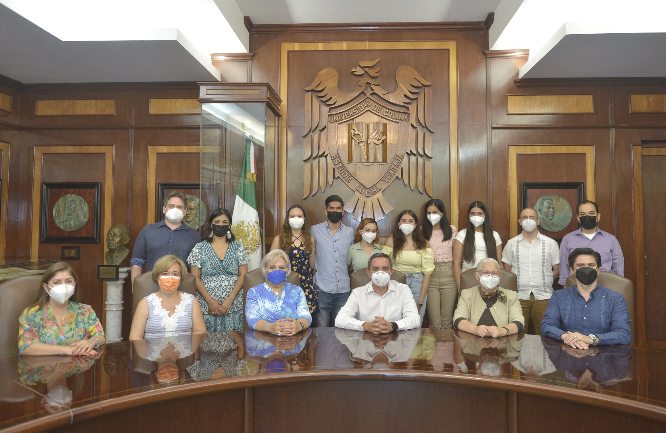 Siete estudiantes de la Facultad de Ciencias de la Universidad de Colima (cinco mujeres y dos hombres), que obtuvieron una beca para continuar sus estudios de posgrado en universidades e institutos de Estados Unidos, visitaron este viernes al rector Christian Jorge Torres Ortiz Zermeño, quien reconoció el trabajo permanente y apasionado de la planta docente de este plantel, que desde hace varios años entusiasma por la investigación científica a las y los jóvenes desde el bachillerato.