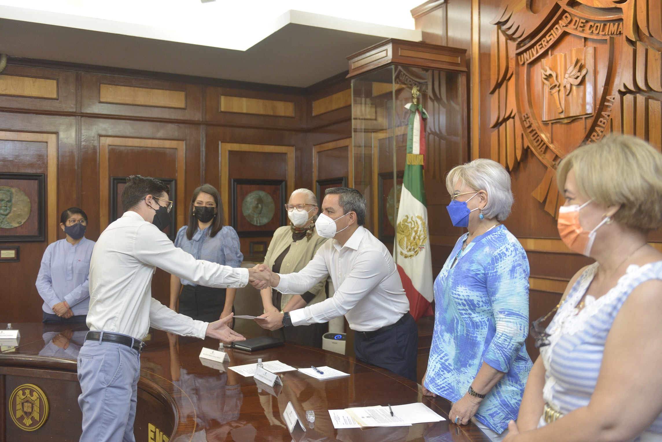 También lo recibieron, de la Facultad de Contabilidad y Administración Colima, José Luis Calderón Mafud; César Augusto Vázquez, de Ingeniería Electromecánica; Fernando Manuel Peralta Castro, de Lenguas Extranjeras; Arturo César García Casillas, de Medicina Veterinaria y Zootecnia; Jorge Ricardo Vásquez Sánchez, de Mercadotecnia y Jaime Alberto Bricio, de la Faculta de Medicina, licenciatura en Nutrición.