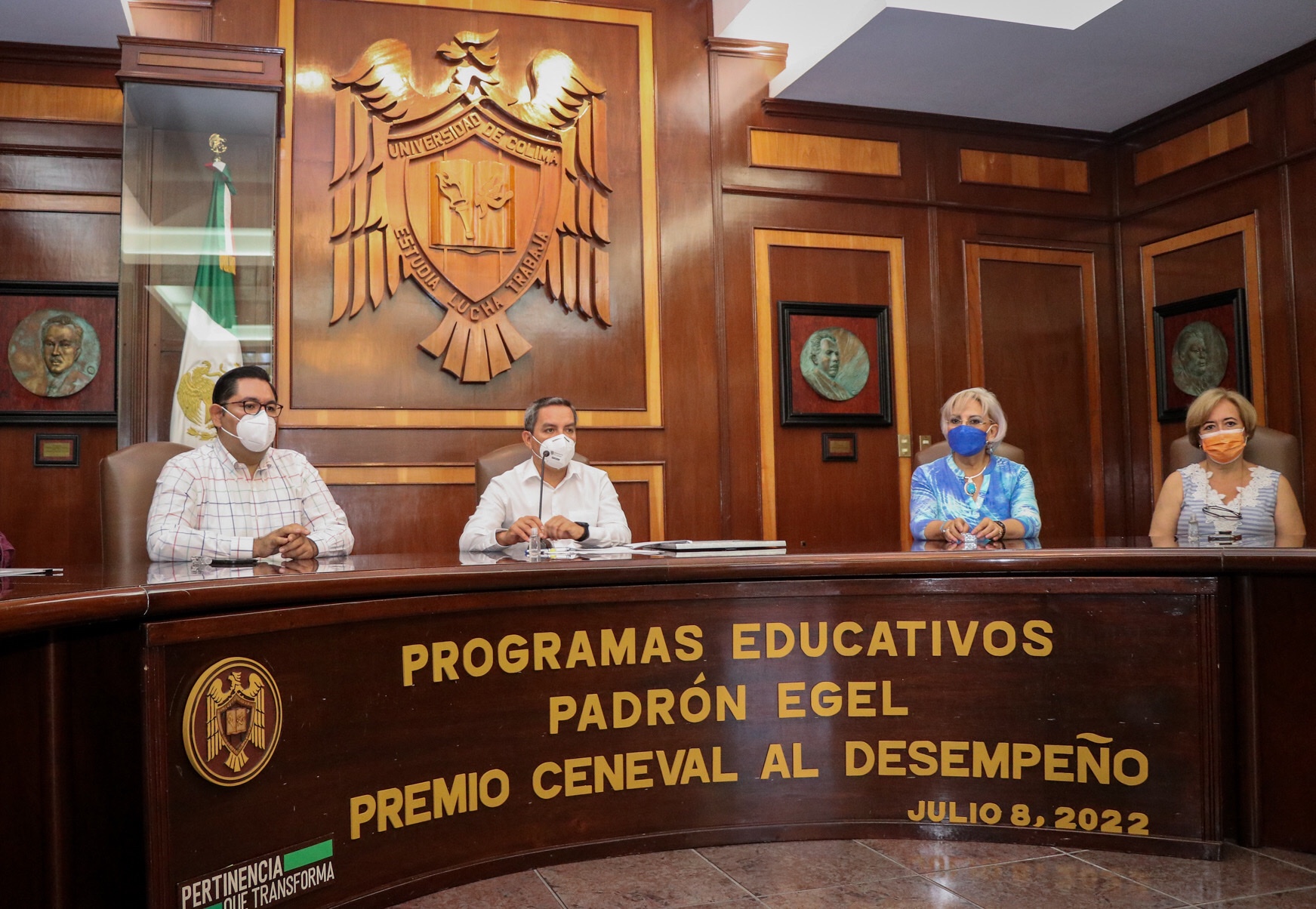Este viernes, en la sala de juntas de la Rectoría, Christian Jorge Torres Ortiz Zermeño, rector de la Universidad de Colima, mostró el reconocimiento entregado a la casa de estudios por el Centro Nacional de Evaluación para la Educación Superior (CENEVAL), por la incorporación de 13 de sus programas al Padrón EGEL: Programas de Alto Rendimiento Académico, para el periodo 2019-2021.