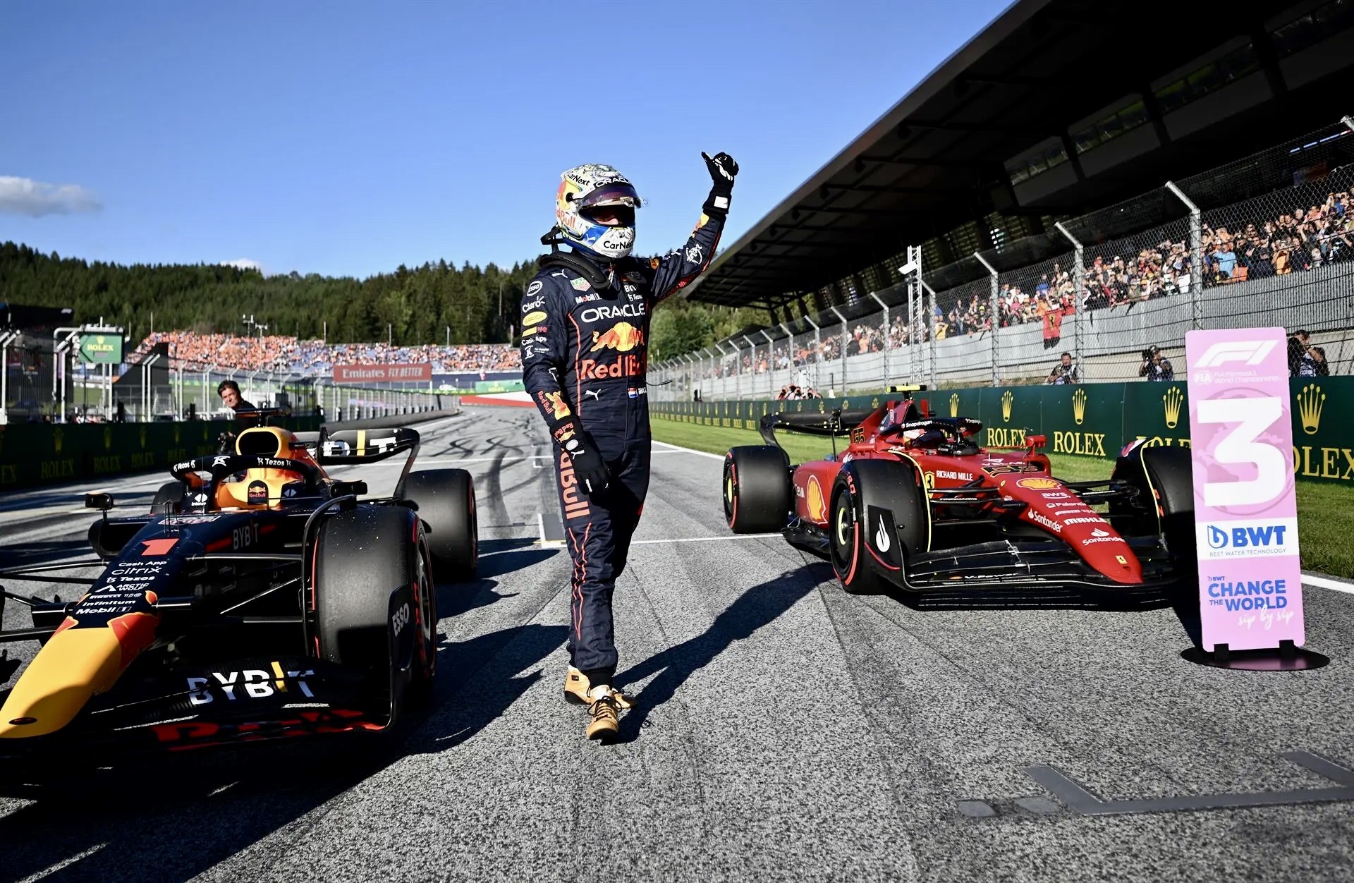 Verstappen, de 24 años, cubrió los 4.318 metros de la pista austriaca en un minuto, cuatro segundos y 984 milésimas, 29 menos que el monegasco Charles Leclerc (Ferrari) y con 82 sobre el compañero de éste, el español Carlos Sainz (Ferrari) , que viene de ganar el pasado domingo en Silverstone (Inglaterra) y arrancará tercero en la prueba reducida, prevista a poco más de un tercio del recorrido del domingo; es decir: 24 vueltas y 103,5 kilómetros.