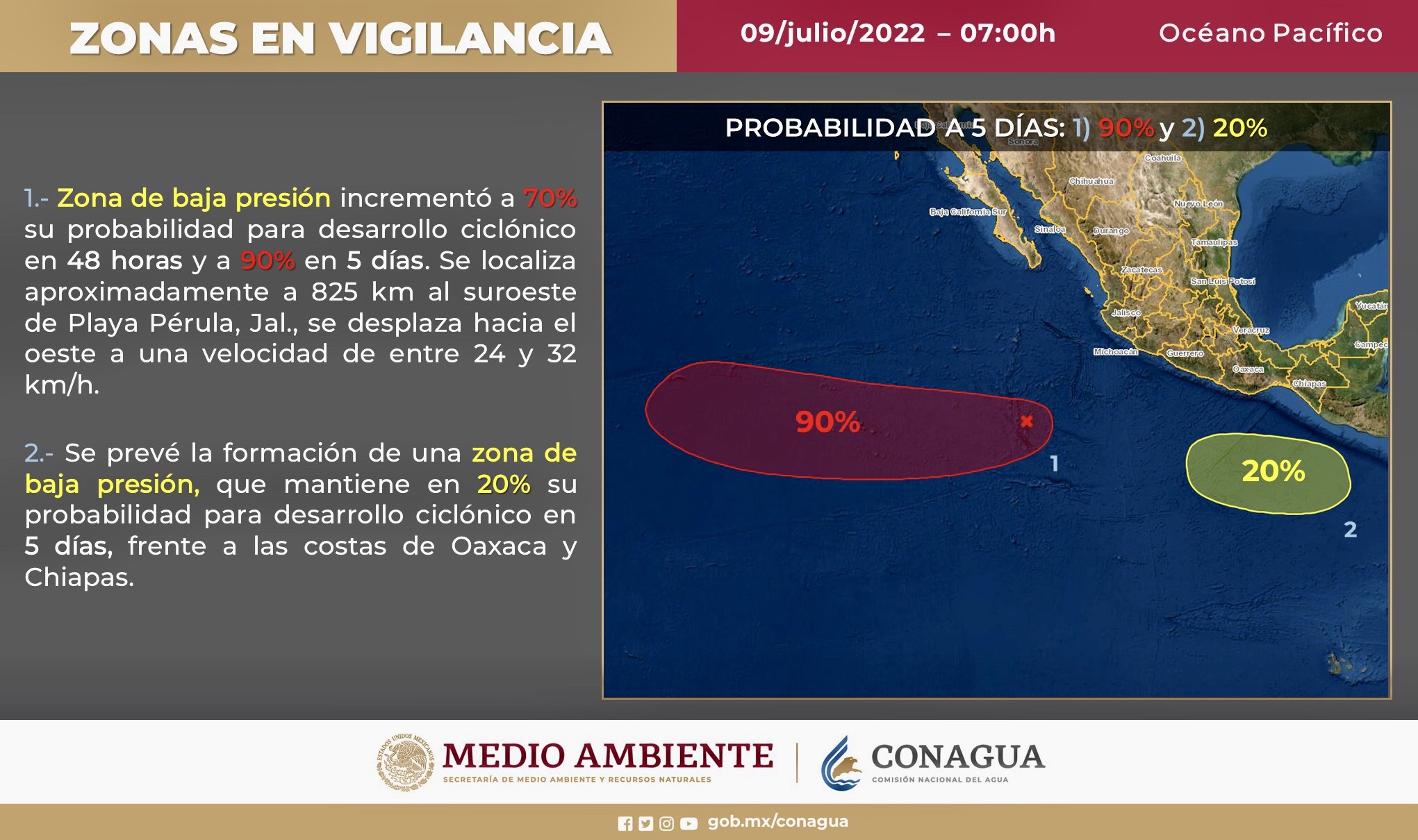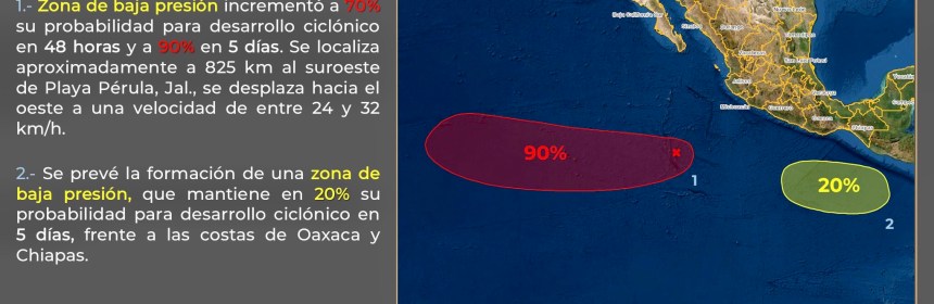 Aumenta a 70% probabilidad de desarrollo ciclónico en el Pacífico. Publicado el 9 julio, 2022 por Análisis Colima Deja un comentario Esta mañana aumentó a 70% la probabilidad para desarrollar un #CiclónTropical en 48 horas y se localiza a 825 km al suroeste de Playa Pérula, #Jalisco. Compártelo: Haz clic para compartir en Facebook (Se abre en una ventana nueva) Facebook Haz clic para compartir en X (Se abre en una ventana nueva) X Haz clic para compartir en WhatsApp (Se abre en una ventana nueva) WhatsApp Haz clic para imprimir (Se abre en una ventana nueva) Imprimir Haz clic para enviar un enlace por correo electrónico a un amigo (Se abre en una ventana nueva) Correo electrónico Etiquetado con Reporte del clima Clima Nacional Noticias Noticias Colima