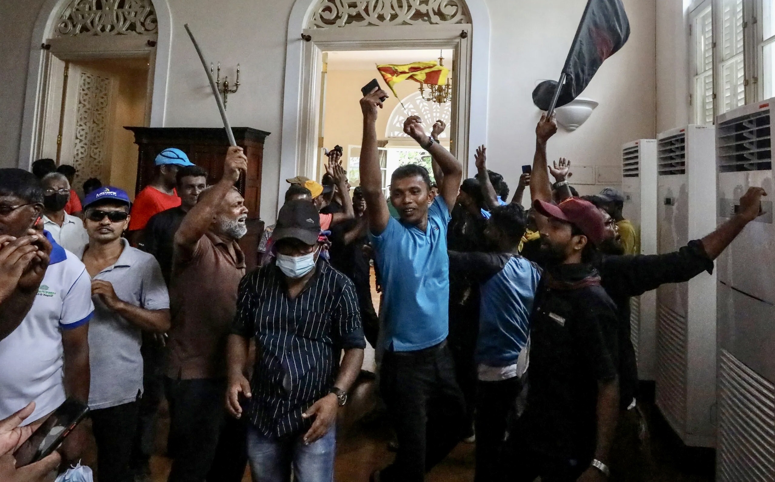 El suceso tuvo lugar horas después de que miles de manifestantes irrumpieran en las residencias oficiales del presidente de Sri Lanka, Gotabaya Rajapaksa, y el primer ministro.