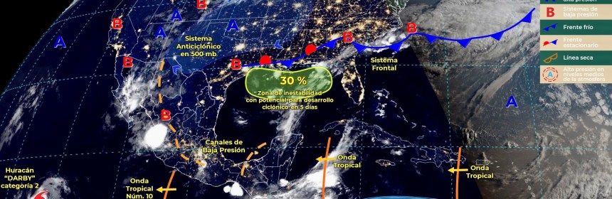 Se pronostican lluvias puntuales muy fuertes en el noroeste, occidente, centro, Sur y sureste de México.