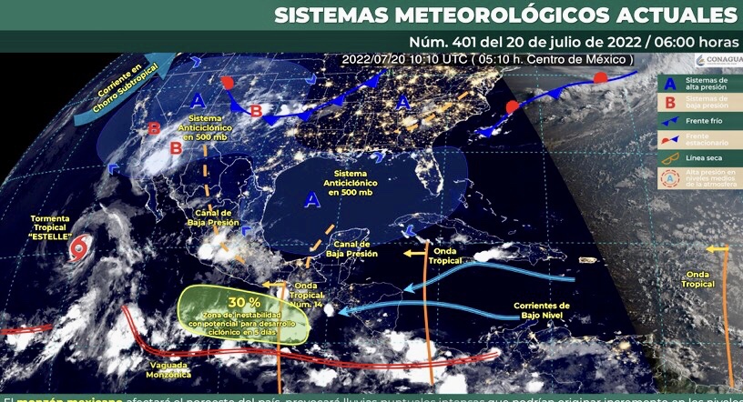 Para más información de la Tormenta Tropical “Estelle” en el Océano Pacífico, consultar el aviso del Servicio Meteorológico Nacional a través de: