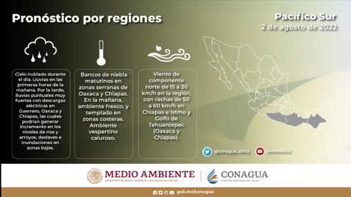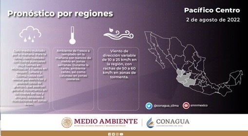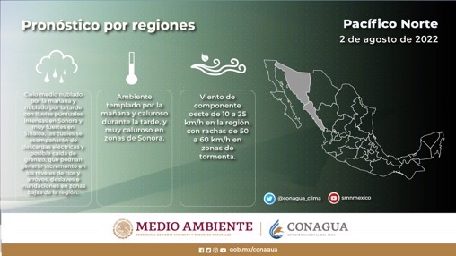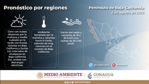Pronóstico para este martes en la Península de Baja California y estados del Pacífico mexicano.