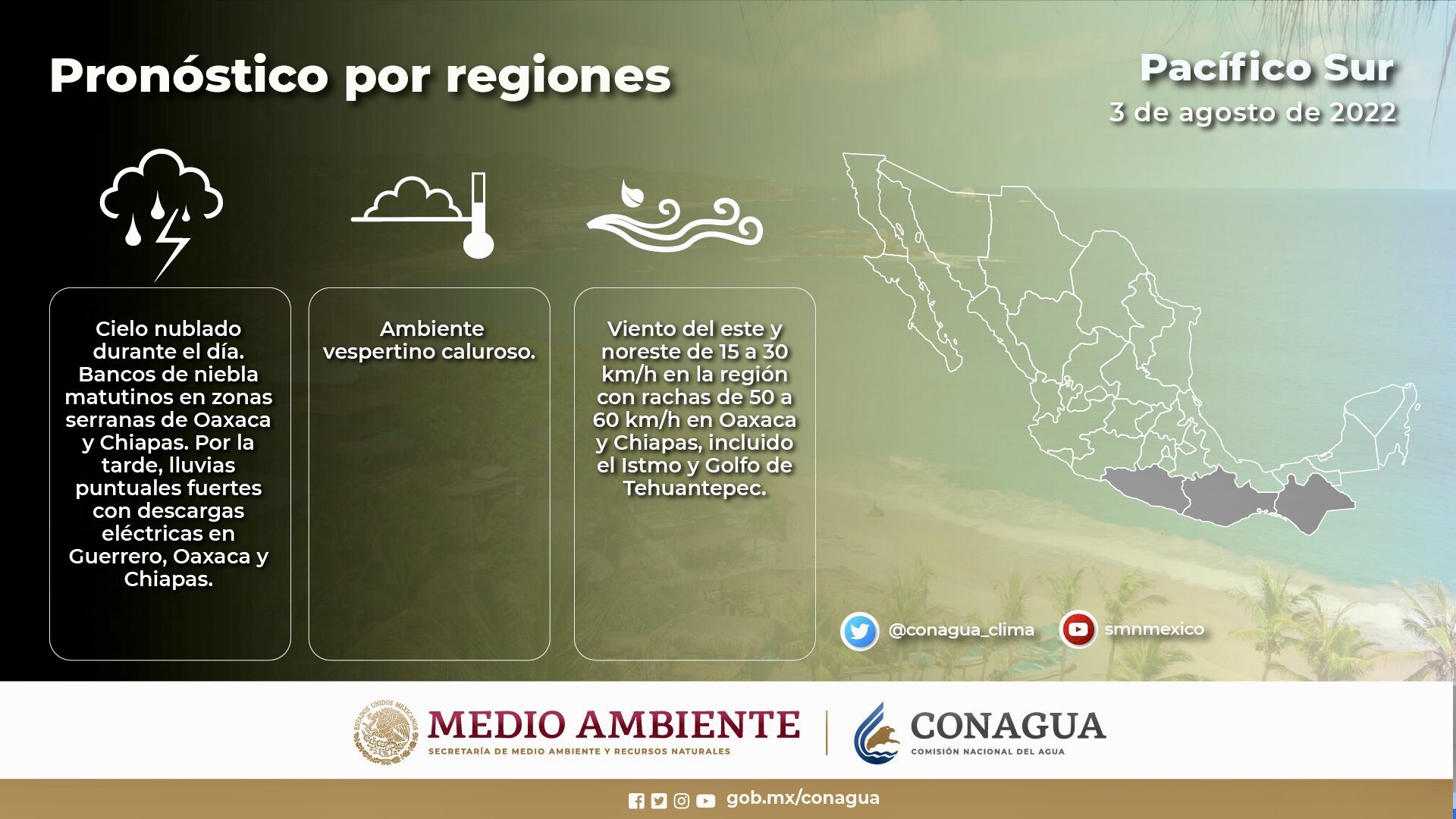 Este es el pronóstico del tiempo para hoy en Nayarit, Jalisco, Michoacán, Colima Guerrero, Oaxaca y Chiapas.