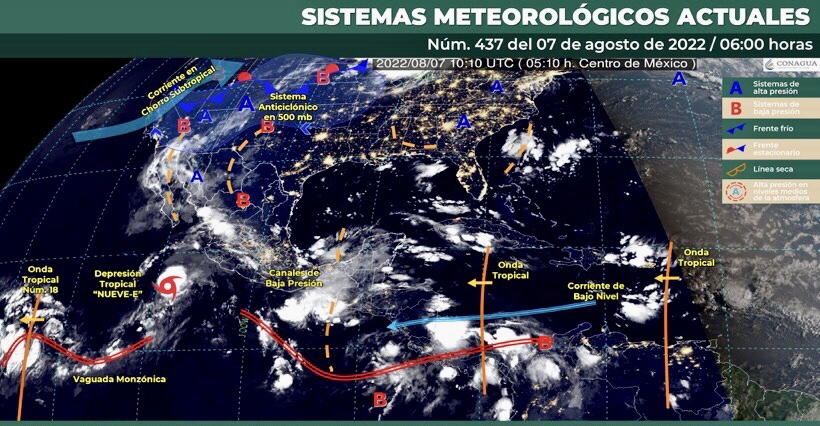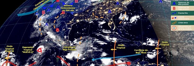 Para información de la Depresión Tropical “Nueve-E”, consulta los avisos del Servicio Meteorológico Nacional a través de: