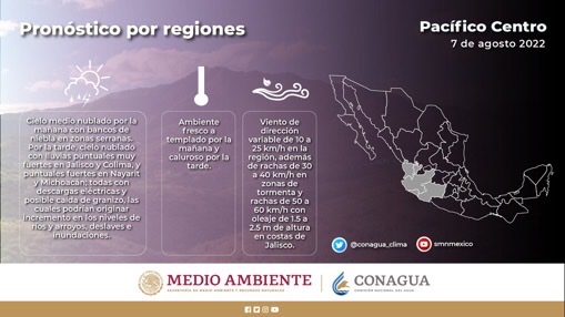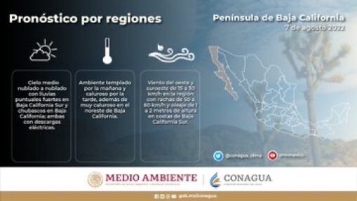 Condiciones Meteorológicas para hoy en la Península de Baja California y estados del Pacífico mexicano.