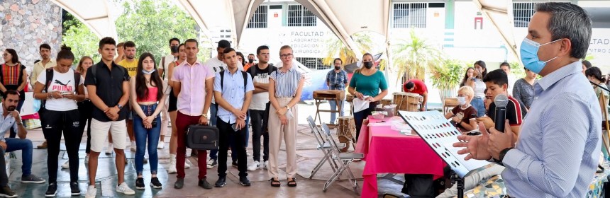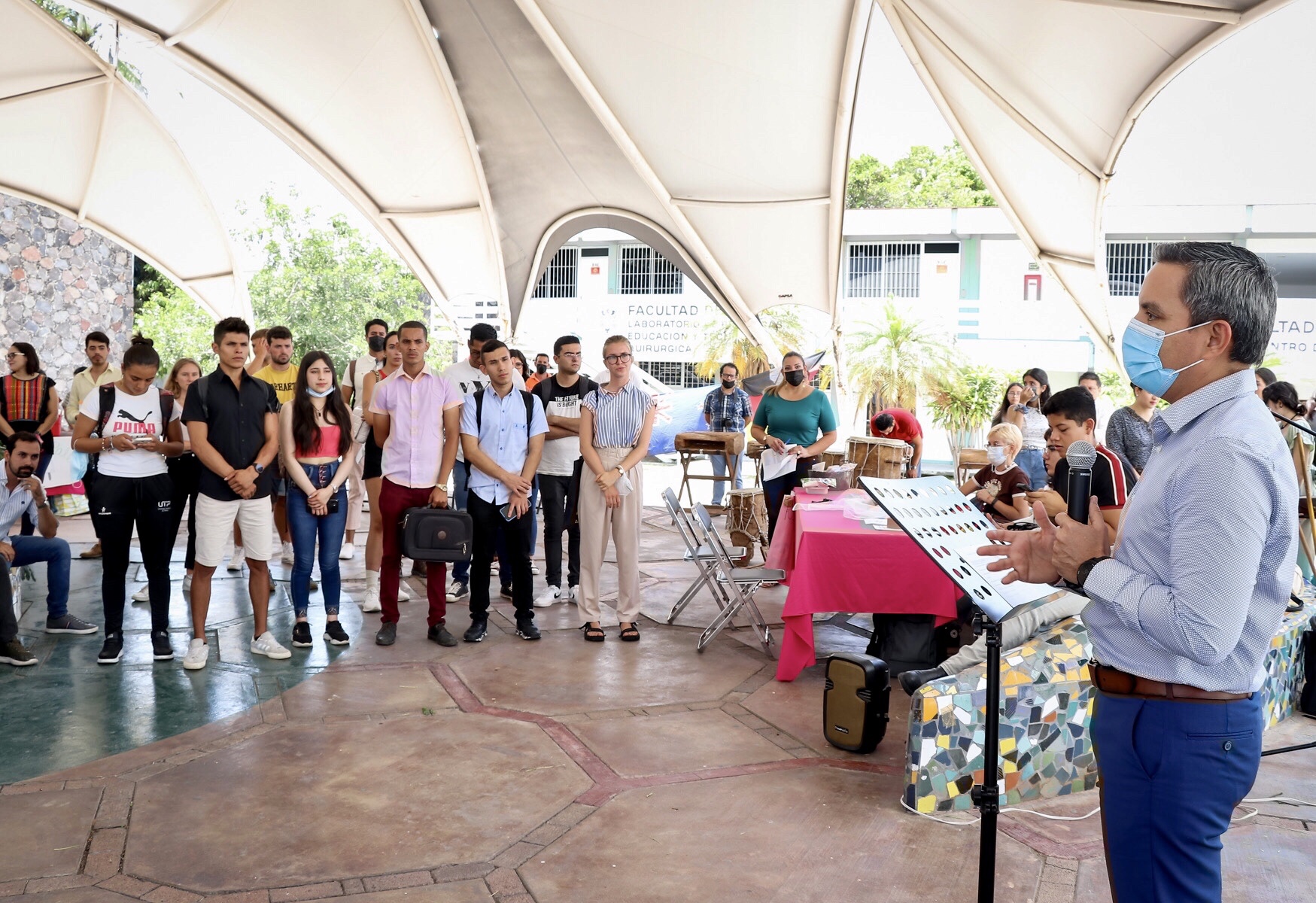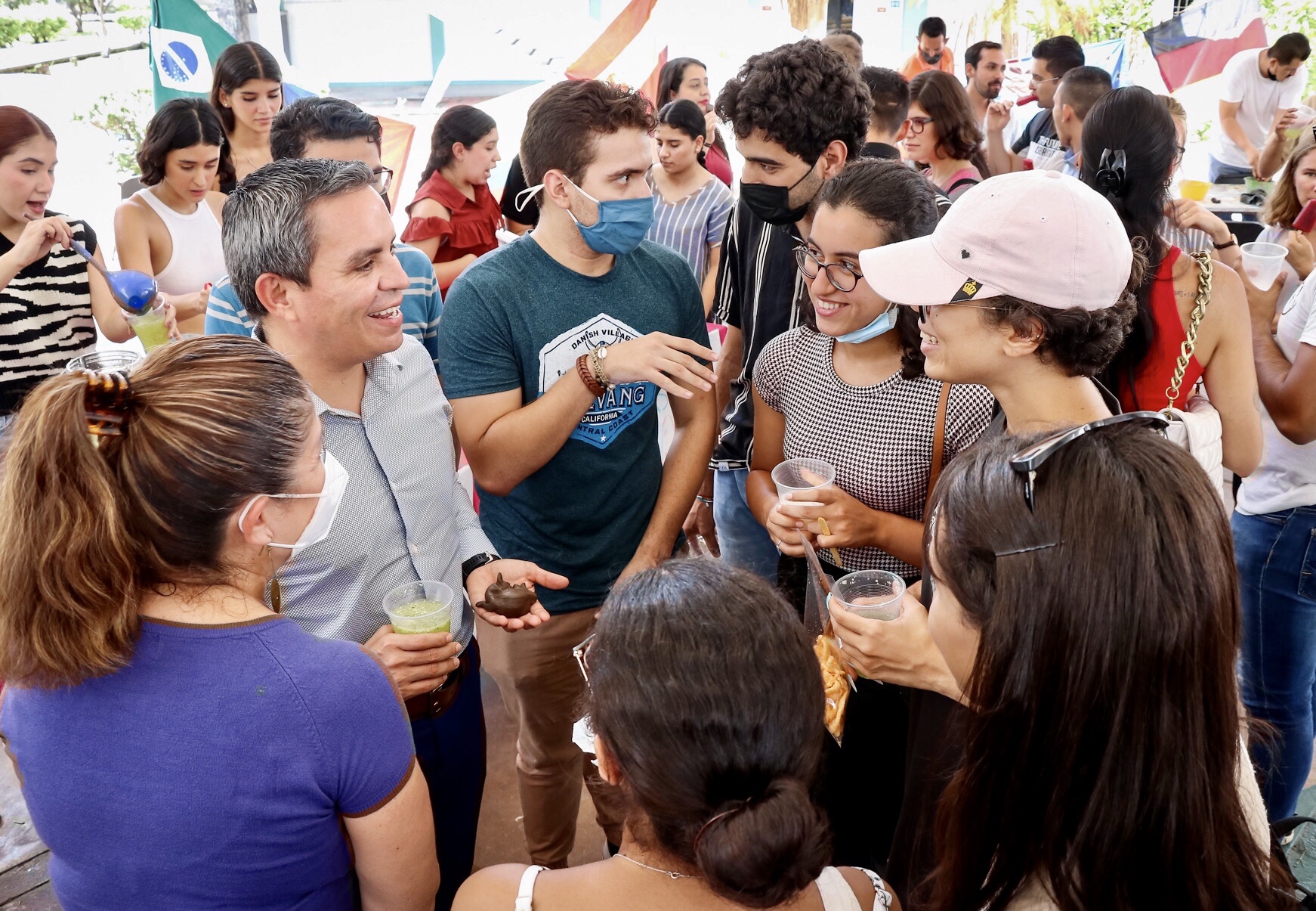 En su mensaje a las y los alumnos visitantes, el rector dijo que la kermés tiene como propósito que conozcan las tradiciones y gastronomía del país que los recibe, en particular de Colima; “los saludo con gusto porque después de la pandemia esto es un reinicio presencial de actividades en la UdeC, como seguramente sucede en sus universidades de origen”.