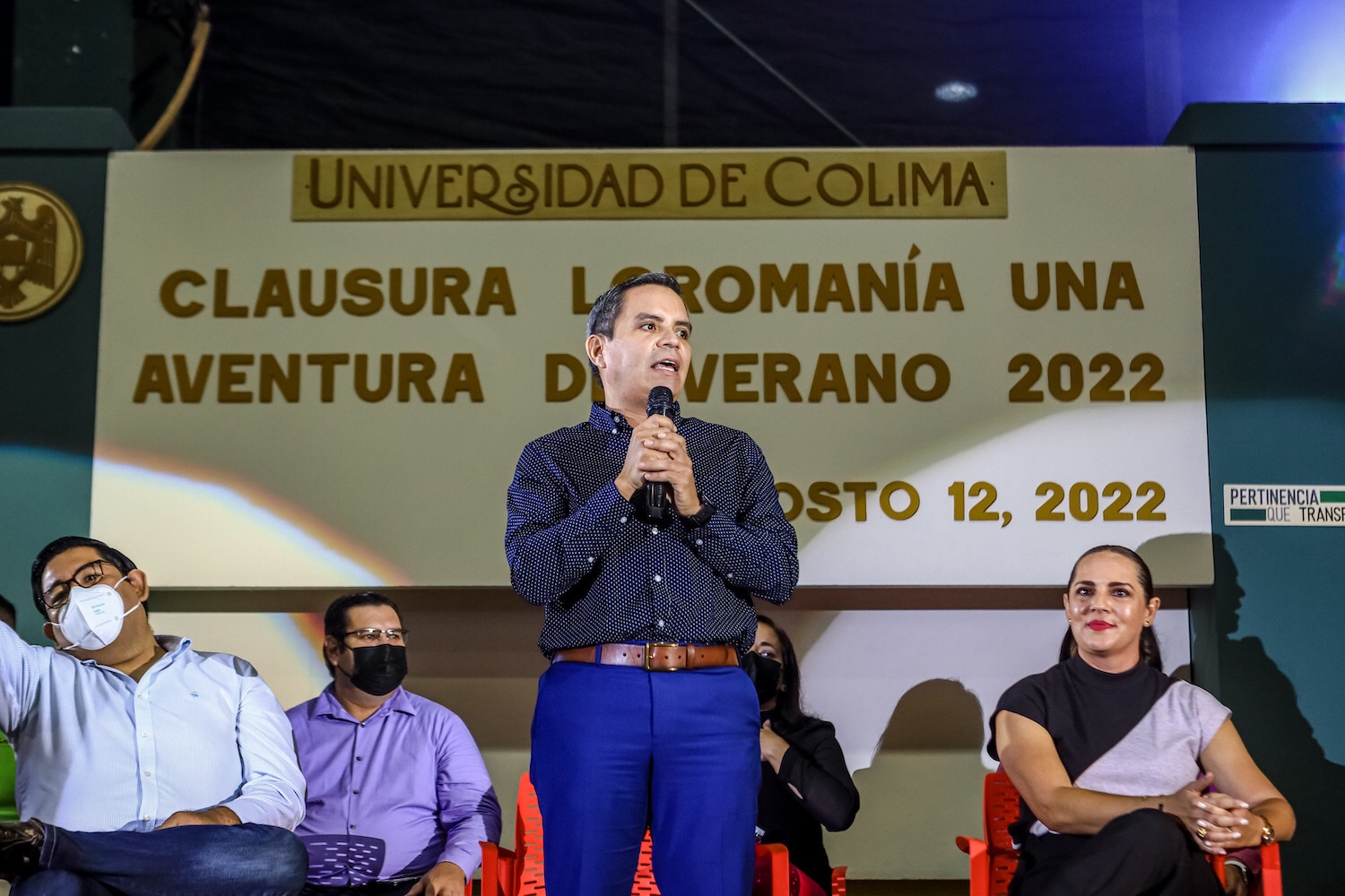 Acompañaron al rector en el presídium, Joel Nino, Secretario General; Juan Diego Gaytán, delegado de Colima; Xóchitl Trujillo, coordinadora general de Investigación Científica; Gabriela Vargas, directora del CUBI; Fernando Sánchez, director general de Innovación y Cultura Emprendedora; Gilda Callejas, directora general de Difusión Cultural; Mario Vladimir Ramírez, director general de Cultura Física y Deporte y Martín Gerardo Vargas, director de la Facultad de Ciencias de la Educación.