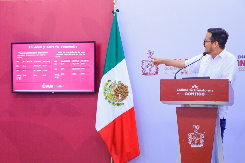 Indira Vizcaíno Silva, titular del Poder Ejecutivo estatal, destacó que el Gobierno de Colima, a través de la Secretaría de Desarrollo Económico (Sedeco) y la Subsecretaría de Turismo, implementó la campaña de promoción turística para la temporada vacacional verano 2022, donde el subsecretario de Turismo, Jorge Padilla Castillo, informó que al momento hay una derrama económica mayor a 637 millones de pesos, faltando todavía 14 noches de esta temporada de asueto.
