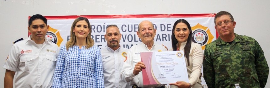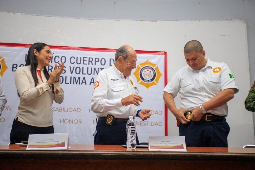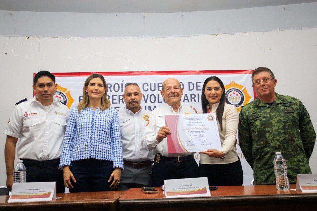- La gobernadora presidió este sábado el cambio en la Comandancia del Cuerpo de Bomberos Voluntarios de Colima, donde reconoció a Melchor Ursúa Quiroz por 70 años de servicio y tomó protesta a Germán Pinto Alonso como nuevo comandante.