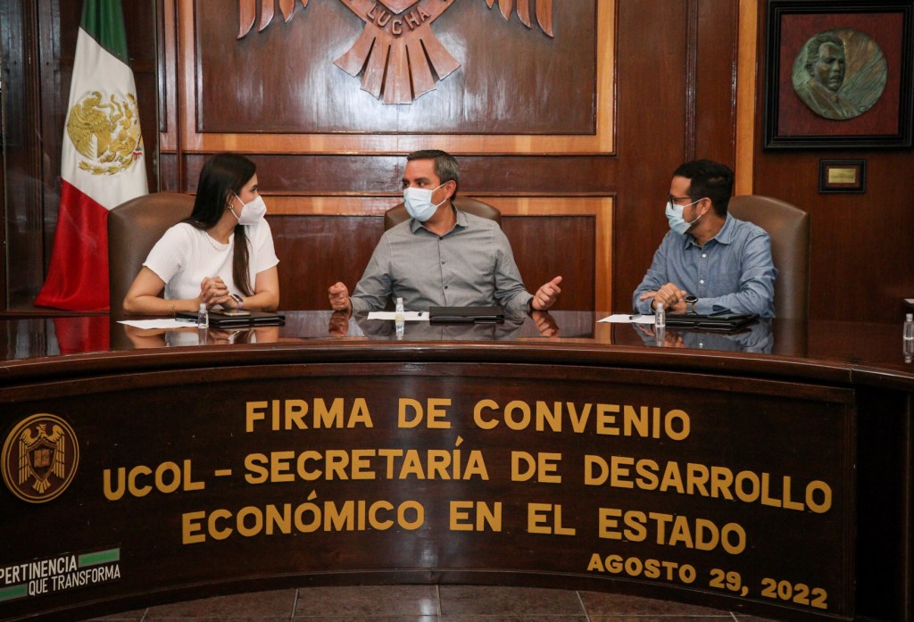 La Secretaría de Desarrollo Económico, la Subsecretaría de Turismo y la Universidad de Colima firmaron un convenio de colaboración con el cual formalizan acciones en materia económica y turística en beneficio de la sociedad colimense. Este acto se realizó el lunes por la mañana en la Sala de Juntas de Rectoría.
