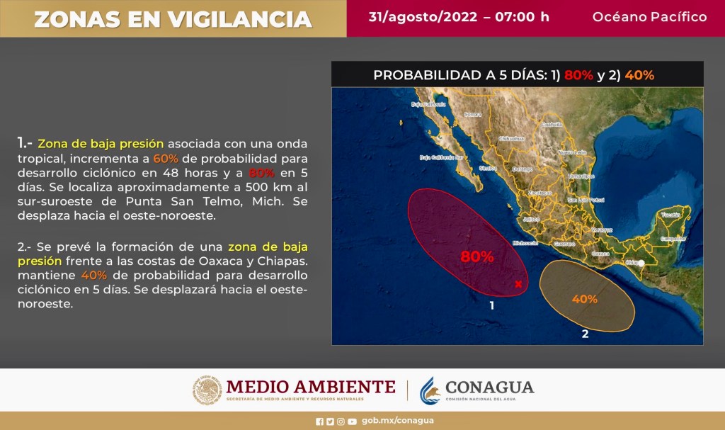 Alta probabilidad de formarse Ciclón Tropical frente a costas de Michoacán. Publicado el 31 agosto, 2022 por Análisis Colima Deja un comentario El #SMNmx vigila una zona de #BajaPresión con alta probabilidad para formar un #CiclónTropical frente a las costas de #Michoacán. Compártelo: Haz clic para compartir en Facebook (Se abre en una ventana nueva) Facebook Haz clic para compartir en X (Se abre en una ventana nueva) X Haz clic para compartir en WhatsApp (Se abre en una ventana nueva) WhatsApp Haz clic para imprimir (Se abre en una ventana nueva) Imprimir Haz clic para enviar un enlace por correo electrónico a un amigo (Se abre en una ventana nueva) Correo electrónico Etiquetado con Ciclón tropical, Costas de Michoacán Nacional Noticias Noticias Colima