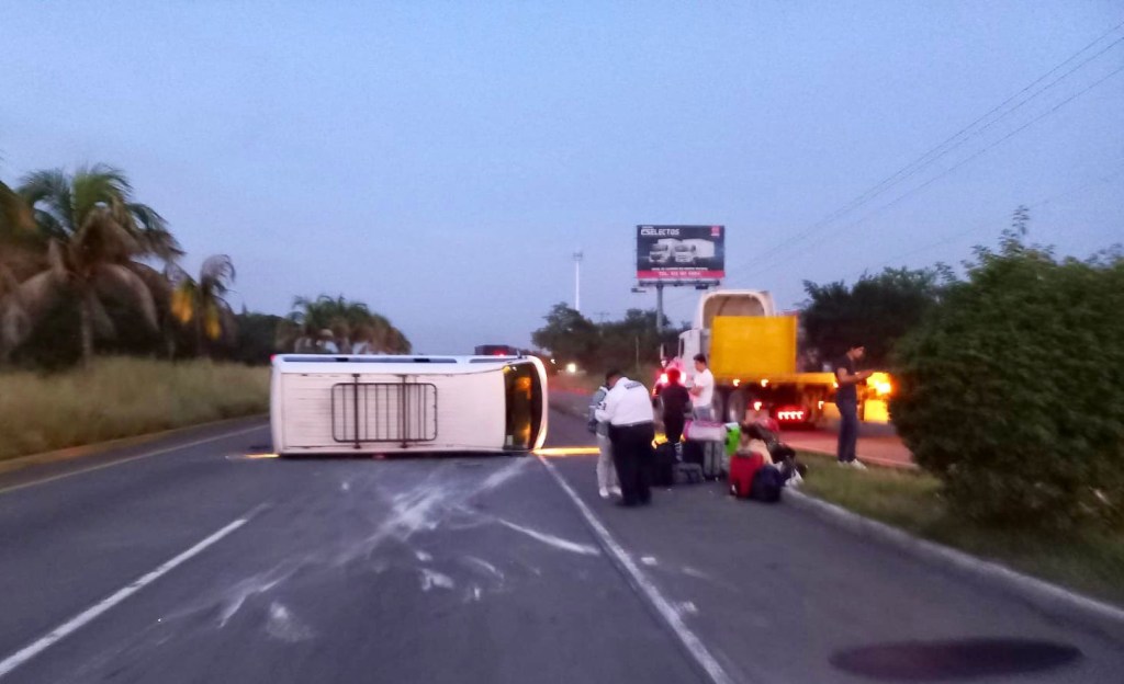 Dieron siete las personas que resultaron lesionadas luego de que el vehículo tipo Van en el que viajaban esta mañana volcó sobre el libramiento Ejército Mexicano, junto a la gasolinera a la entrada de la Colonia Francisco Villa, en la ciudad de Colima.