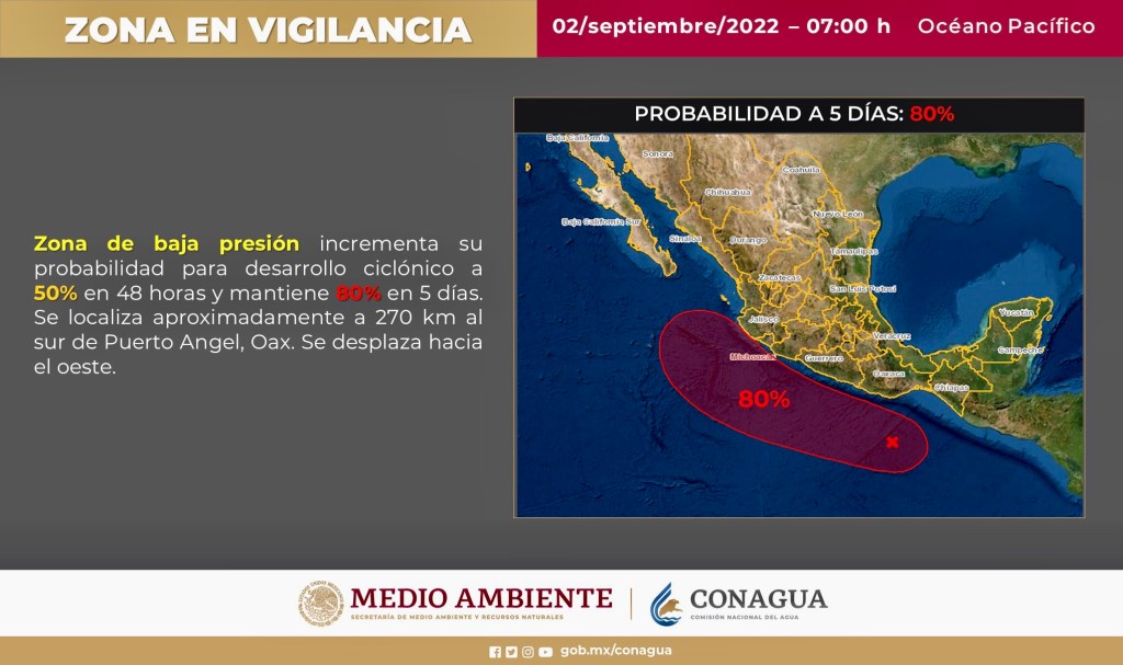 Seguimiento de una zona de #BajaPresión sobre el océano #Pacifico con posibilidad para formar un #CiclonTropical en los próximos días. Información complementaria en el gráfico