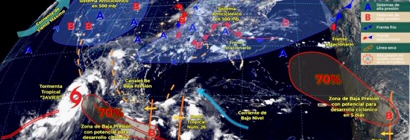 Para información de la tormenta tropical “Javier”, consulta los avisos del Servicio Meteorológico Nacional a través de: https://smn.conagua.gob.mx/es/pronosticos/avisos/aviso-de-ciclon-tropical-en-el-oceano-pacifico