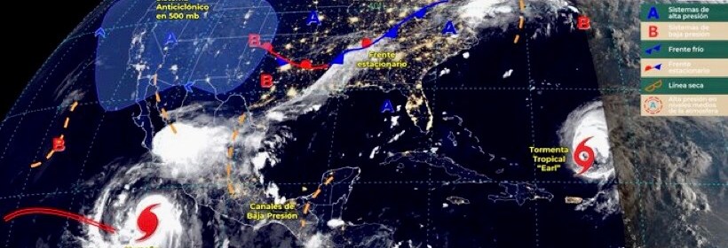 Pacífico Norte: Cielo nublado la mayor parte del día con lluvias fuertes y descargas eléctricas al amanecer en zonas de Sonora y Sinaloa. Ambiente cálido durante la mañana, además de fresco sobre sierras de Sonora. Por la tarde, lluvias puntuales torrenciales en Sinaloa y lluvias puntuales fuertes en Sonora; ambas con descargas eléctricas. Las lluvias, podrían generar incremento en los niveles de ríos y arroyos, así como ocasionar deslaves e inundaciones. Ambiente vespertino caluroso, asi como muy caluroso en el noroeste de Sonora. Viento de dirección variable de 15 a 30 km/h en zonas de la región, además de rachas de 70 a 80 km/h y oleaje de 2 a 4 metros de altura en las costas de Sinaloa.