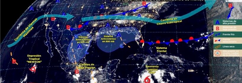 Este día, el primer sistema frontal de la temporada se extenderá sobre la frontera norte de México e interaccionará con la entrada de humedad proveniente del Golfo de México y gradualmente, durante la noche, con un canal de baja presión sobre el noreste del país, originando lluvias puntuales muy fuertes en Nuevo León, Tamaulipas y San Luis Potosí, así como chubascos en Sonora, Chihuahua y Coahuila; dichas lluvias se acompañarán de descargas eléctricas y posible caída de granizo. Asimismo, se pronostican vientos con rachas de 40 a 60 km/h y posibles tolvaneras en Sonora, Chihuahua, Coahuila y Nuevo León. Otros canales de baja presión sobre el occidente, centro, sur y sureste del país, aunados al ingreso de humedad de ambos océanos e inestabilidad atmosférica superior, ocasionarán lluvias puntuales intensas en Guerrero, Veracruz, Oaxaca y Chiapas, muy fuertes en Puebla y Tabasco, además de fuertes en Michoacán, Estado de México, Ciudad de México, Morelos, Tlaxcala, Hidalgo y Campeche. Finalmente, se pronostica ambiente vespertino cálido a caluroso sobre la mayor parte de la República Mexicana, con temperaturas máximas superiores a 40°C en el noroeste de Sonora y el noreste de Baja California.