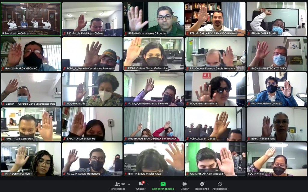 La mañana de este miércoles, en Sesión Ordinaria realizada de manera virtual, el H. Consejo Universitario, con un quórum de 340 concejales, aprobó un total de 10 acuerdos, además de ratificar el nombramiento de Gabriela Morales Llamas como tesorera de la UdeC y la elección de Octavio González Mejía como el nuevo integrante del Consejo Ciudadano de Radiodifusión de la casa de estudios. Esta elección la había realizado, días antes, el Comité de Regulación de Radio Universitaria a través de una convocatoria.