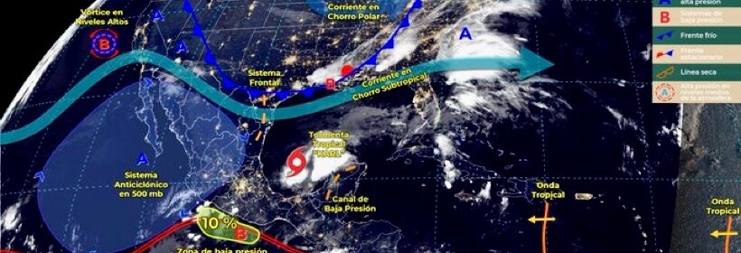 El ciclón tropical “Karl” ocasionará lluvias puntuales intensas en zonas de Veracruz, Tabasco y Chiapas, así como lluvias muy fuertes en Puebla, Campeche y Yucatán.