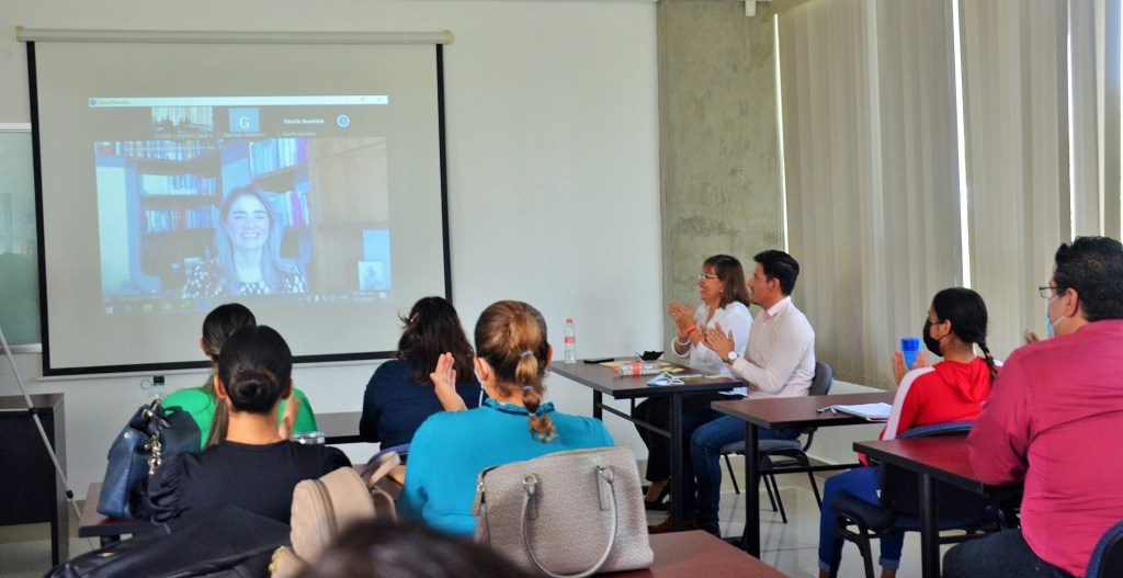 Previo al inicio de la conferencia, la Consejera Presidenta del IEE, María Elena Adriana Ruiz Visfocri, dio la bienvenida y agradeció la ponencia virtual de la Consejera Electoral del INE, de quien leyó su currículum. Además recordó que a lo largo de los años las mujeres han venido conquistando espacios públicos y reafirmó que desde el Instituto se continuarán los trabajos y acciones necesario para lograr la igualdad sustantiva.